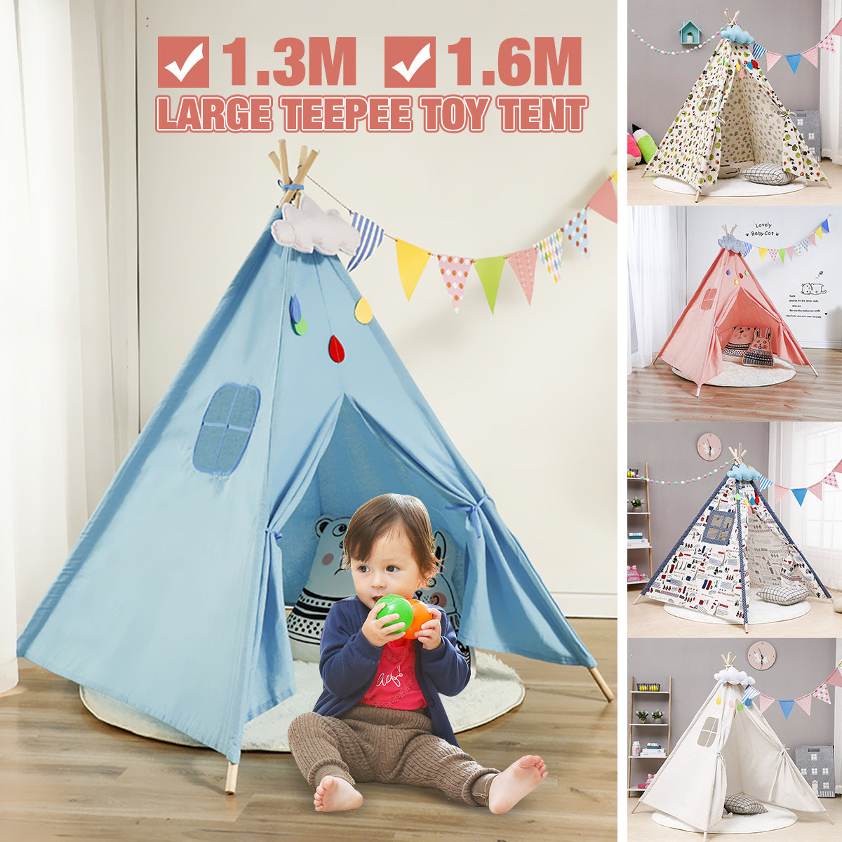 51 Inches Large Teepee Kids Play Tent Foldable | Gift Indoor Outdoor for Kids