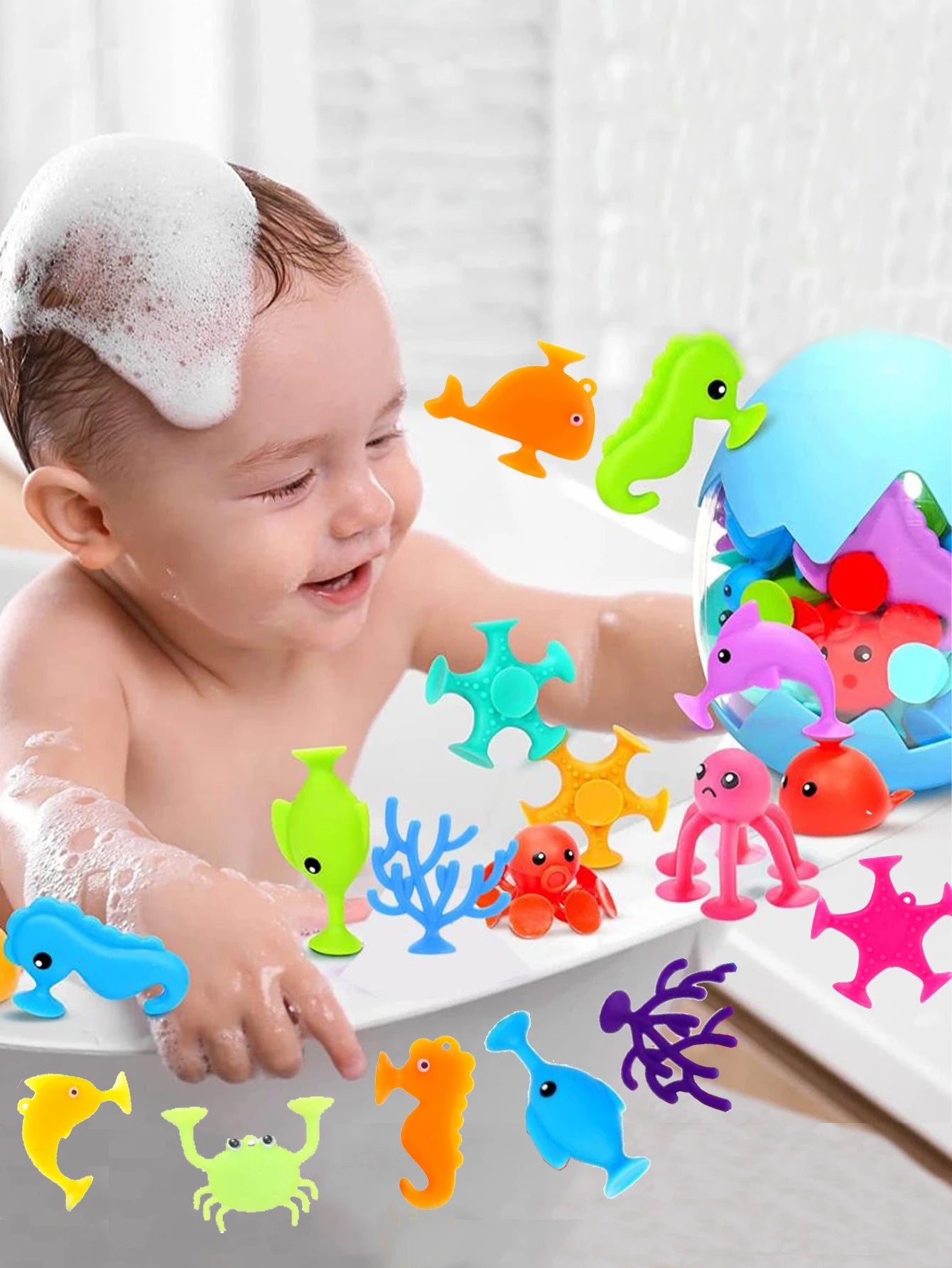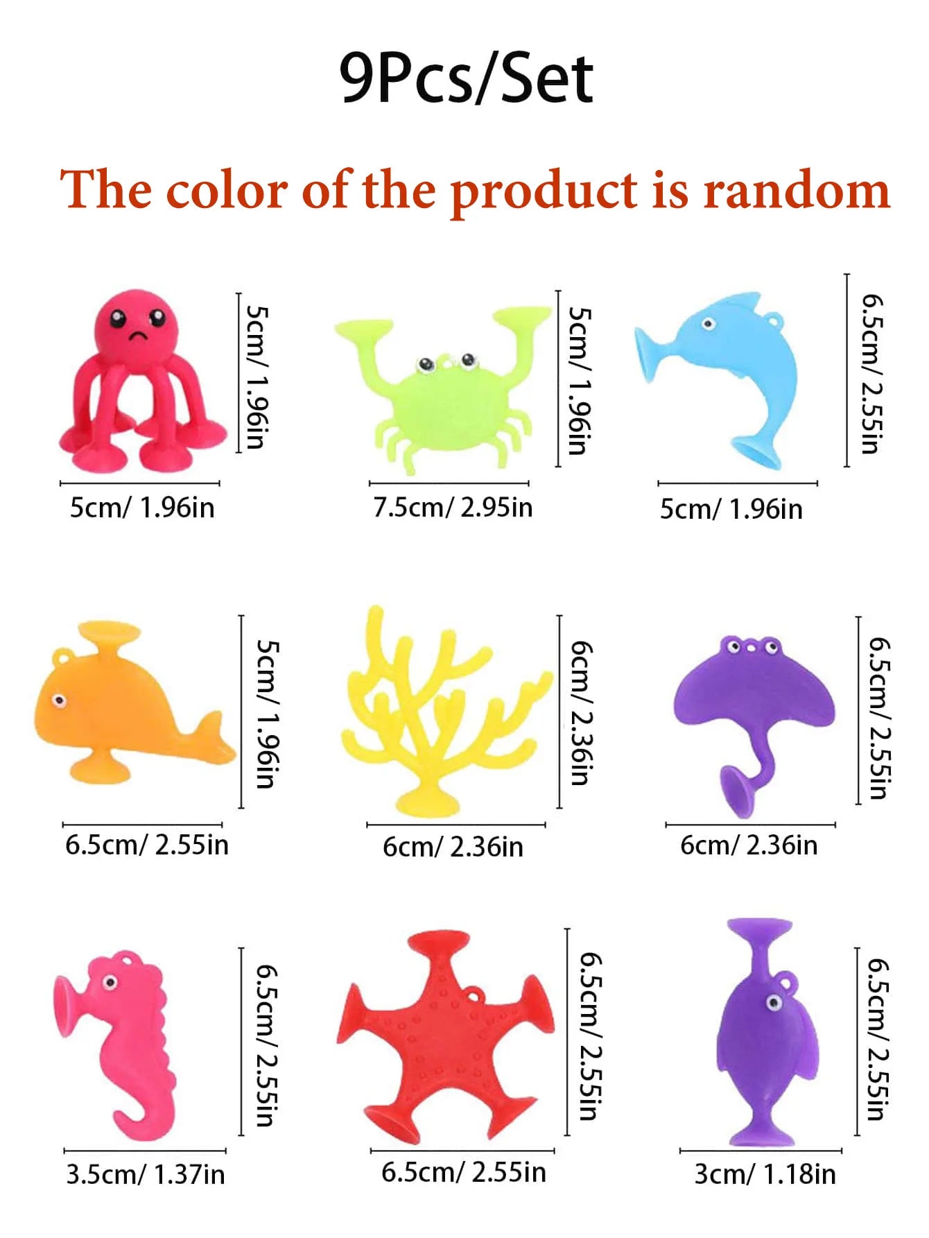 Transform ordinary bath times into a kaleidoscope of colors with our 9-Piece Random Color Ocean Animal Bath Toys Set. Order now and infuse a delightful splash of unpredictability into your little one's daily routine!