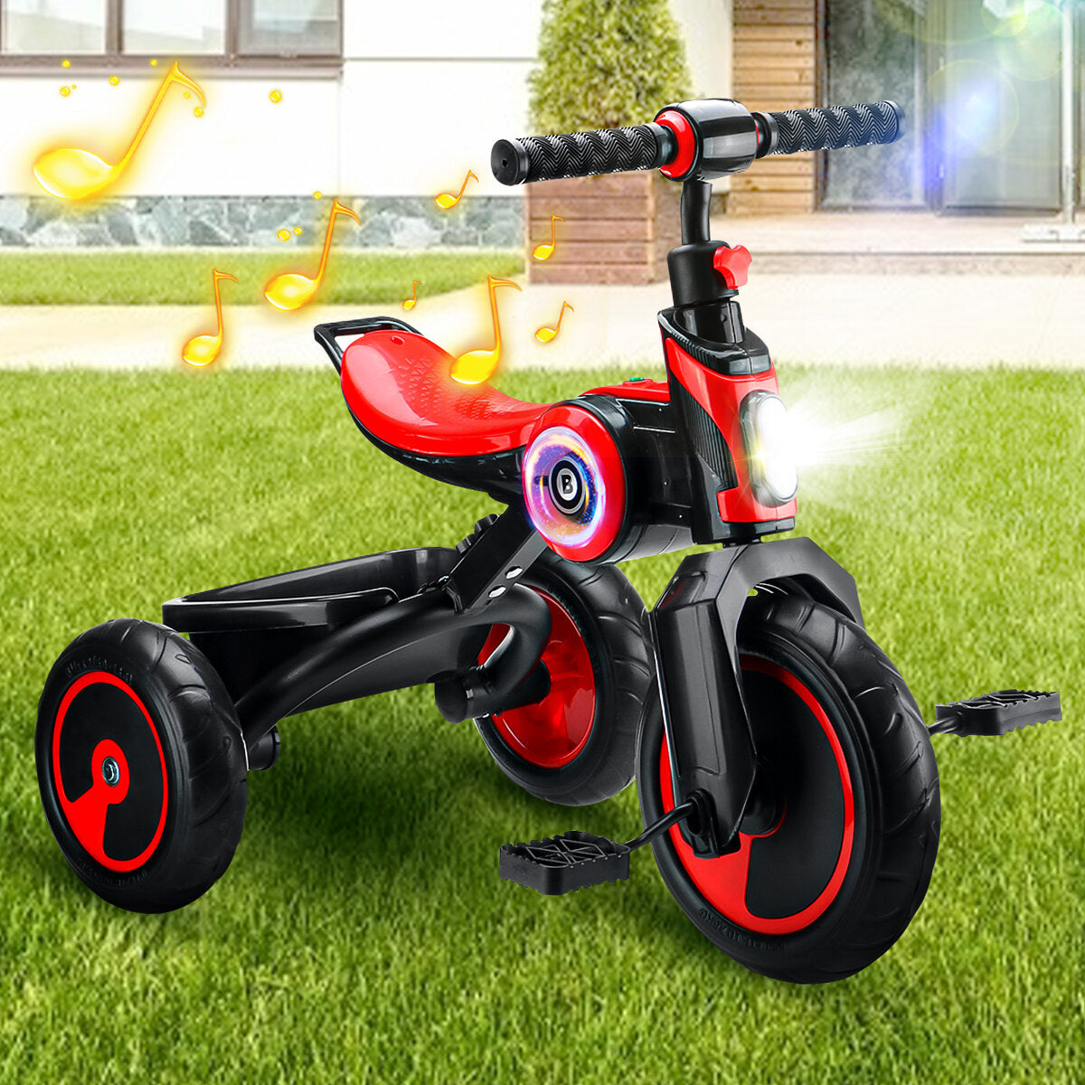 Kids Tricycle Portable Baby Stroller 3 Wheel Bicycle Children Bike with Music Speaker