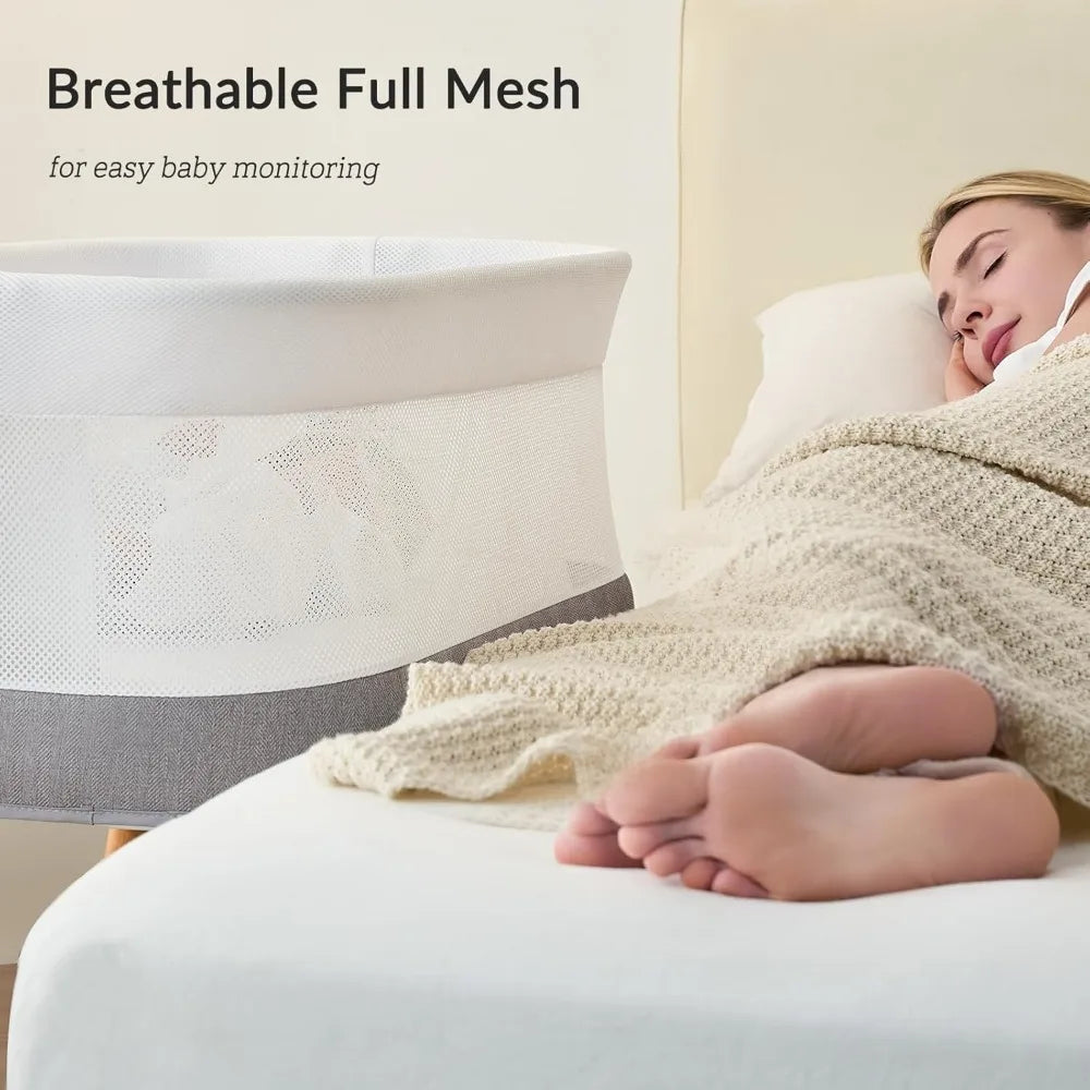 Create a safe and comforting sleep space for your baby with this Electric Rocking Bassinet featuring smart motion detection and hands-free functionality. Designed to mimic the gentle rocking of a parent's embrace, this bedside sleeper offers three soothing sway speeds to help lull your baby into a restful sleep.
