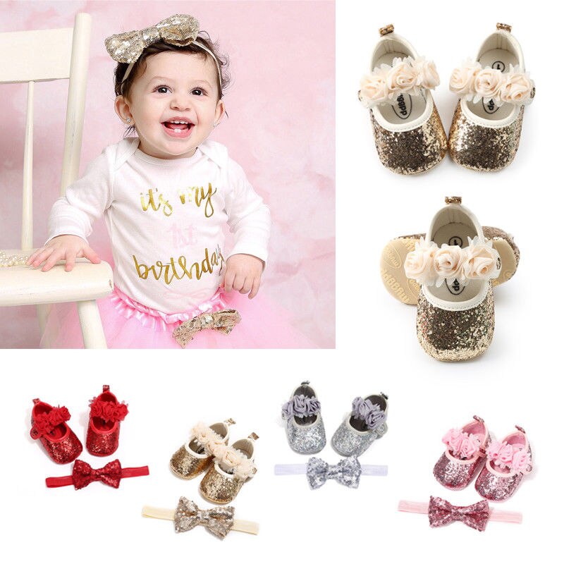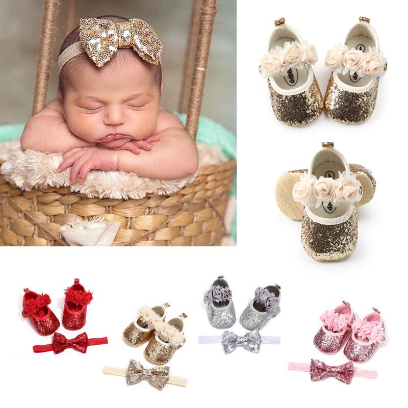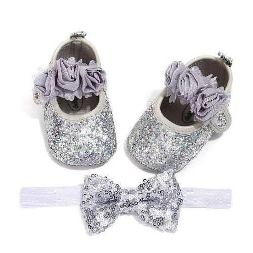Ensemble chaussures et bandeau pour bébé à paillettes et nœud papillon
