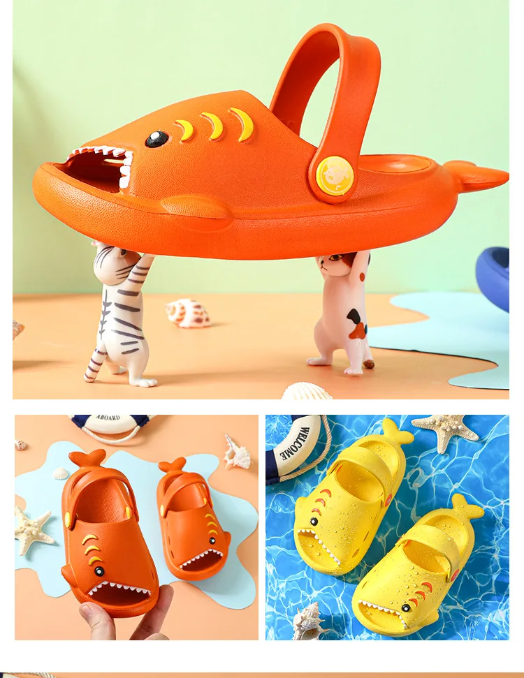 Une jolie paire de sandales à motif requin pour garçons et filles. Fabriquées en EVA de haute qualité, ces sandales ultra-légères, souples et résistantes sont parfaites pour le style de vie actif de votre enfant.