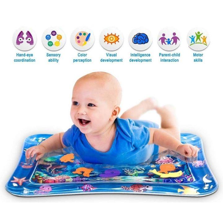 Notre tapis pour le temps sur le ventre a des jouets colorés représentant des animaux marins qui sembleront bouger grâce à l'effet de l'eau. Votre bébé sera attiré par les couleurs et les mouvements, et passera un excellent moment à jouer sur le tapis d'eau.