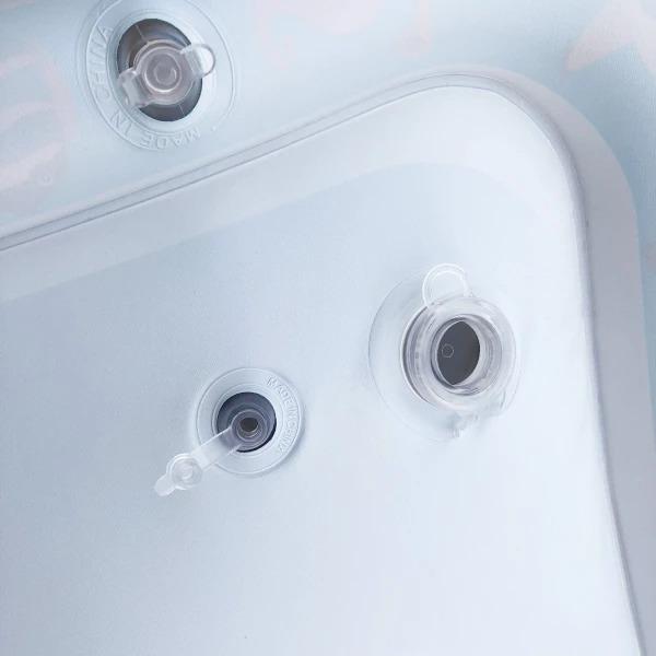 Il suffit de gonfler l’anneau extérieur avec de l’air, puis de remplir le tapis intérieur avec suffisamment d’eau du robinet. Ensuite, assurez-vous de bien refermer les valves. Posez-le au sol et que le plaisir commence !
