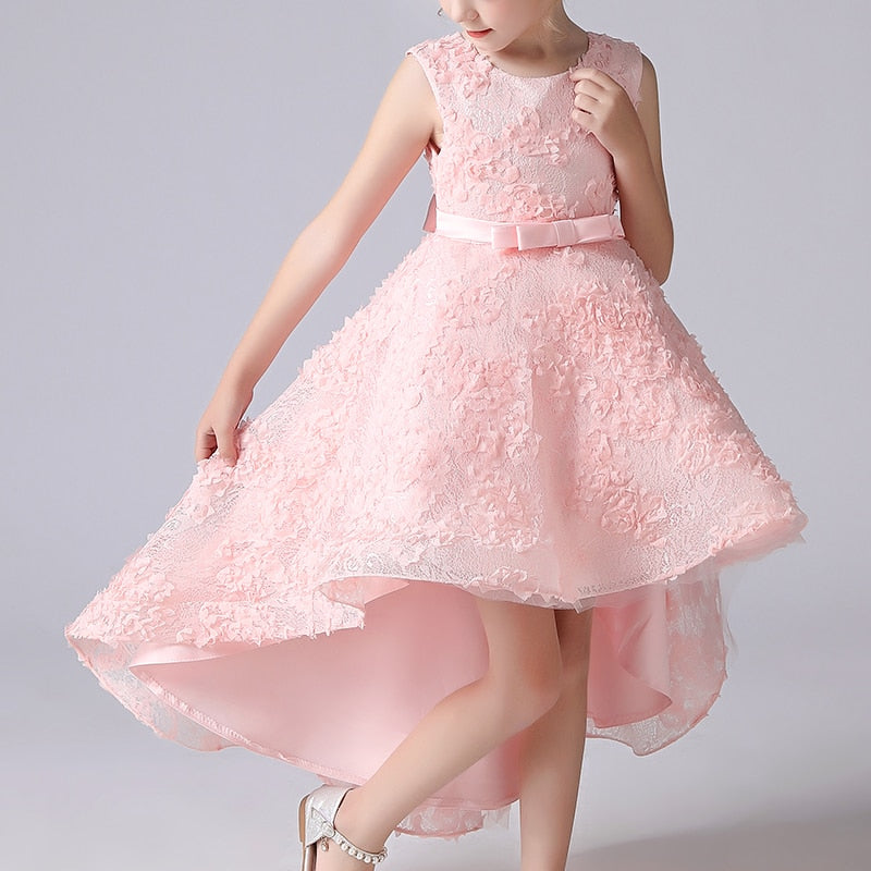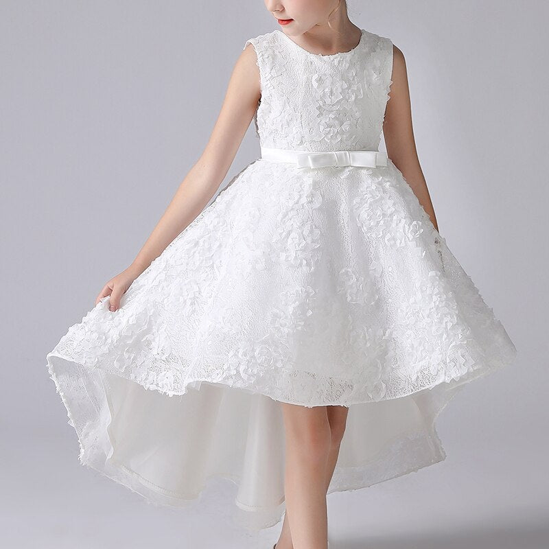 Robe de princesse longue à petites fleurs entièrement brodée dans le dos