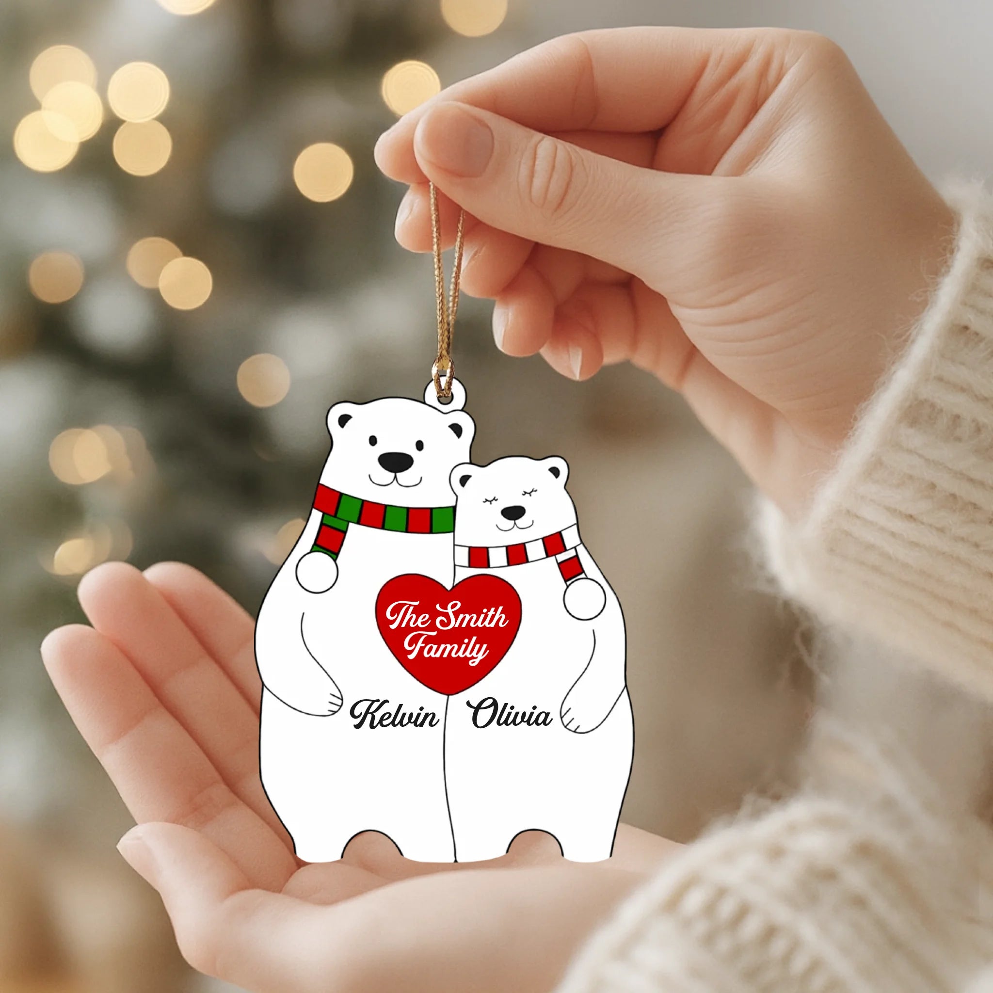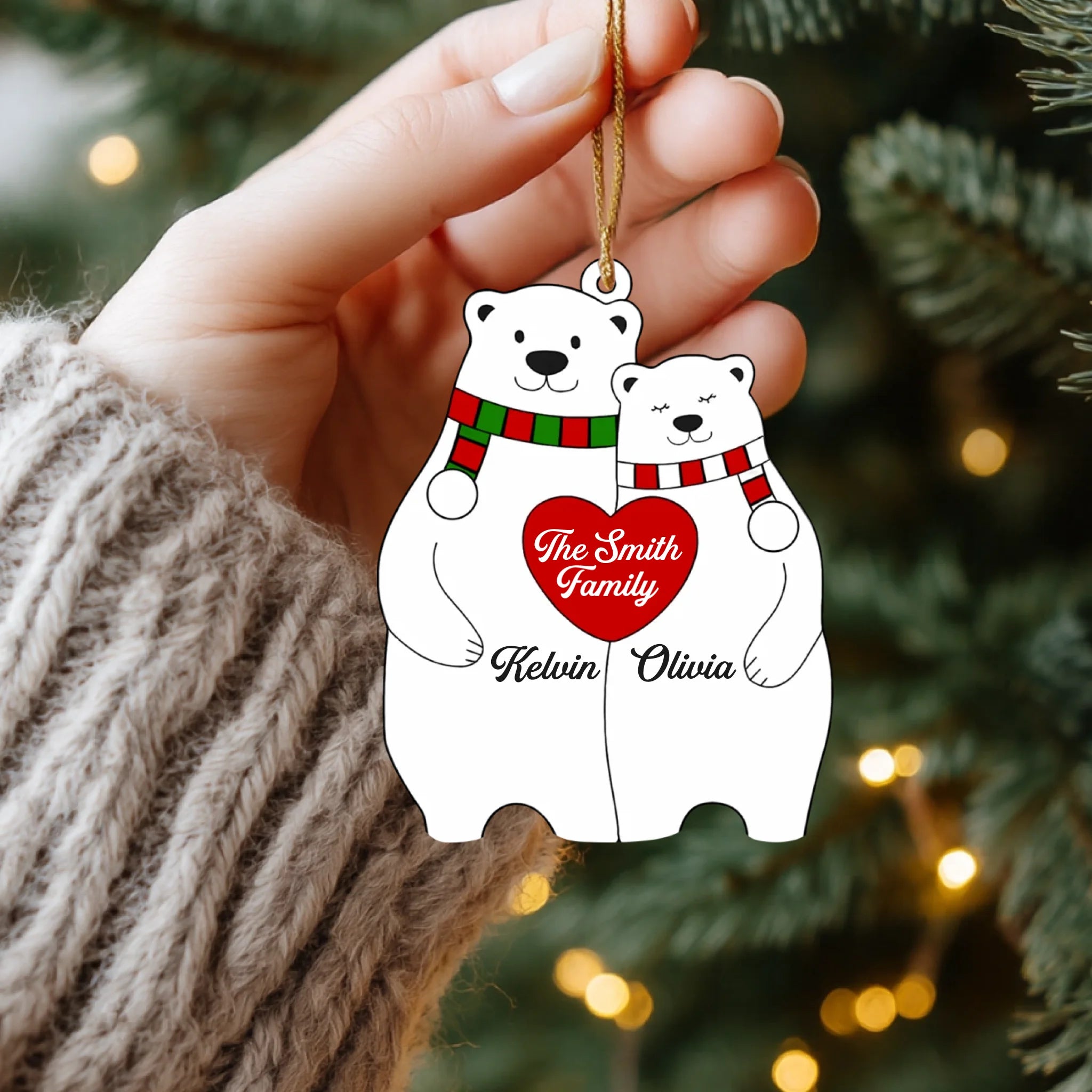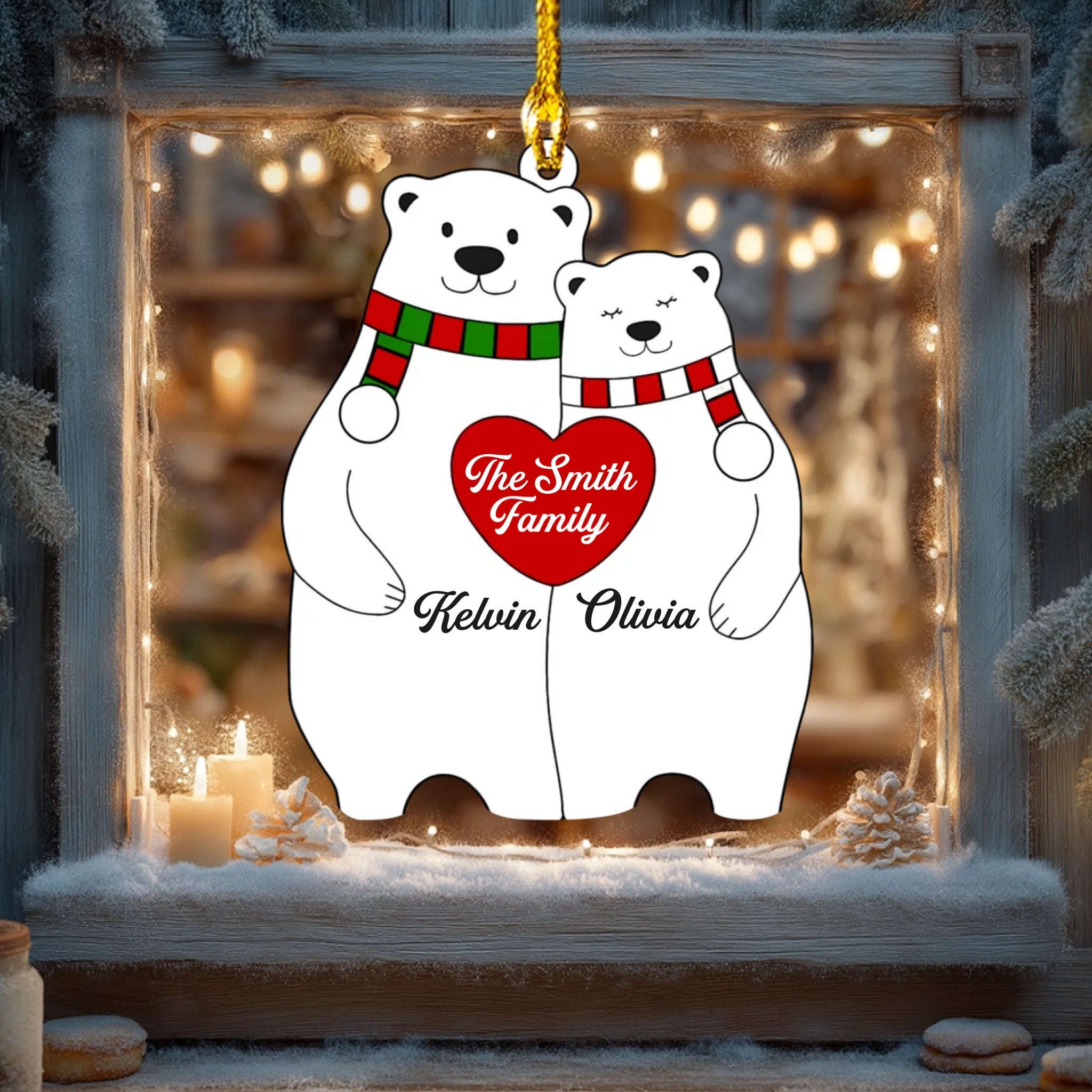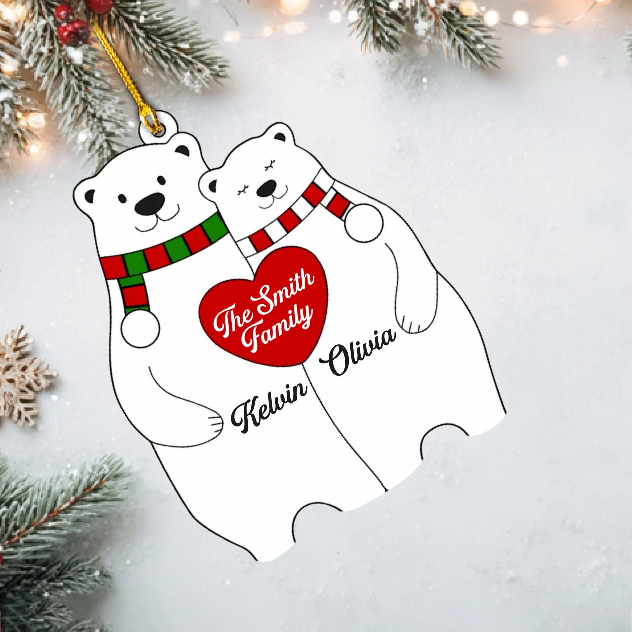 Personalized Bear Family Heart Christmas Acrylic Ornament