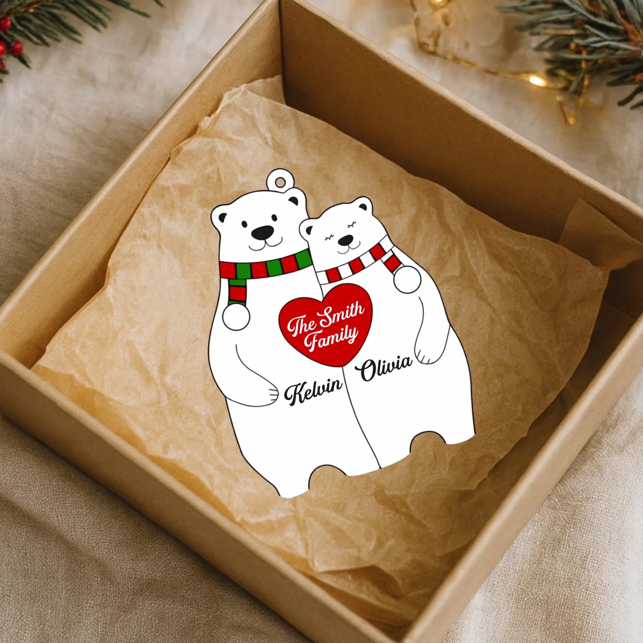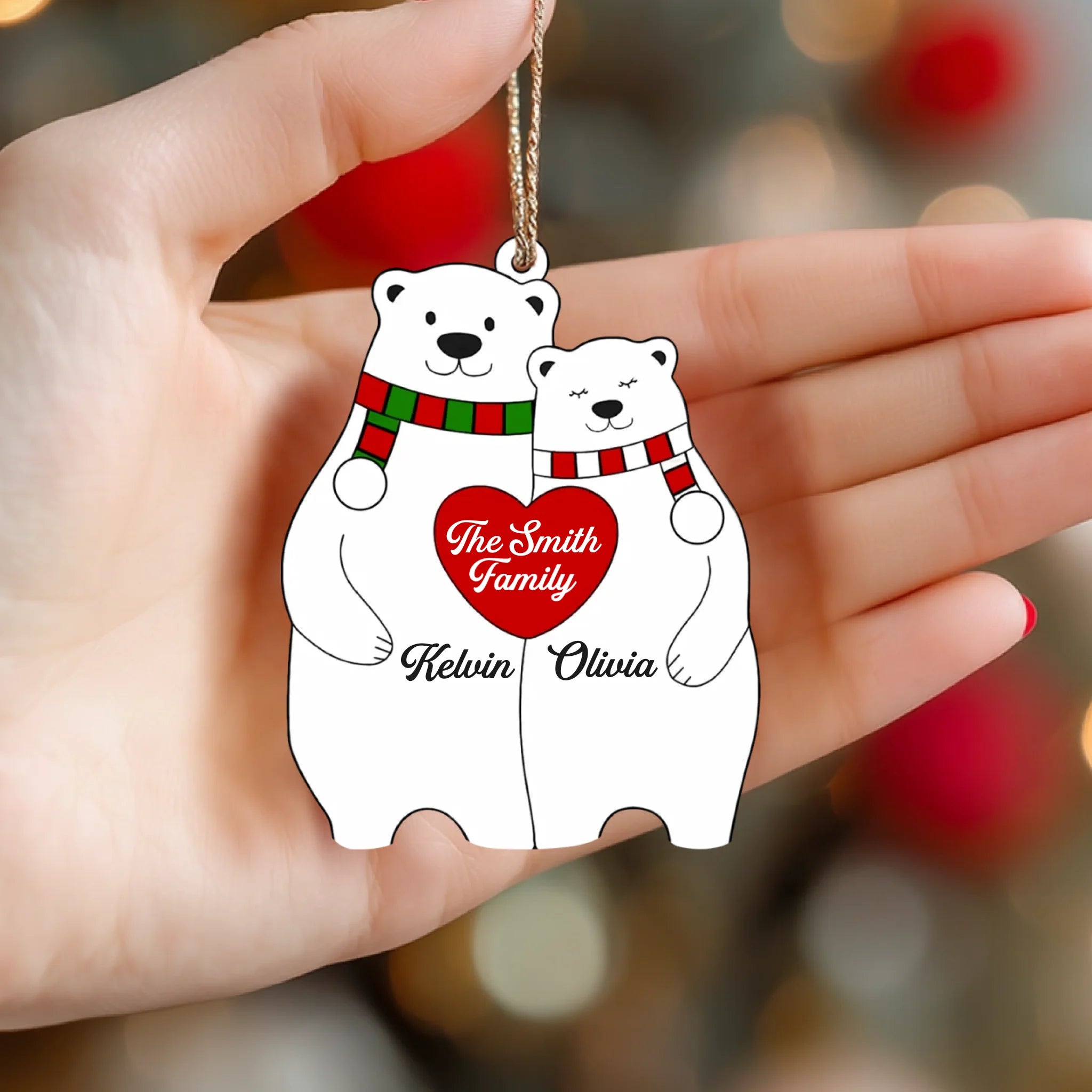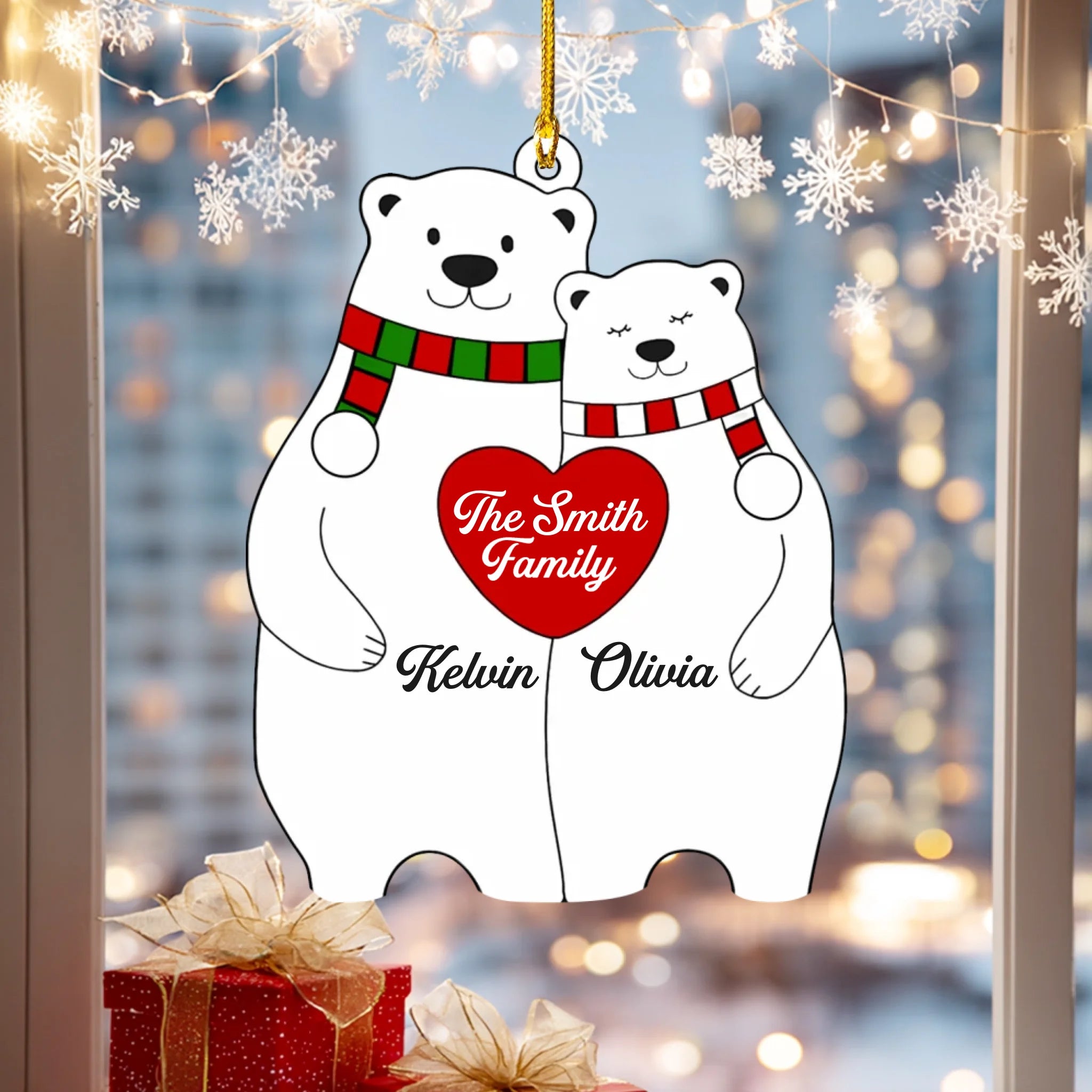 Personalized Bear Family Heart Christmas Acrylic Ornament