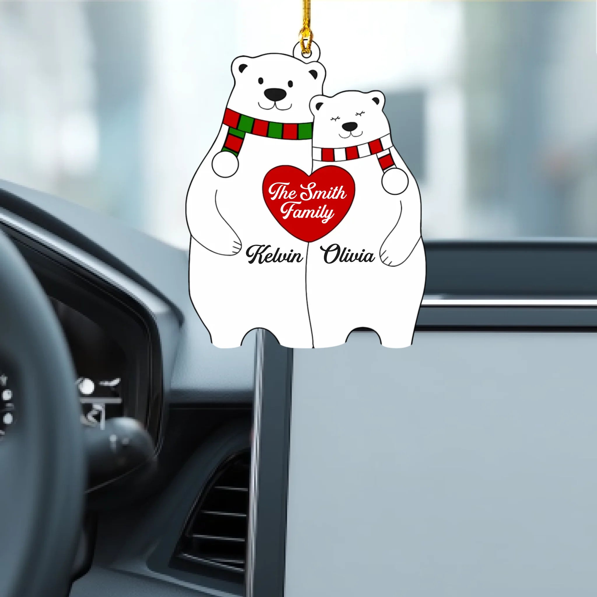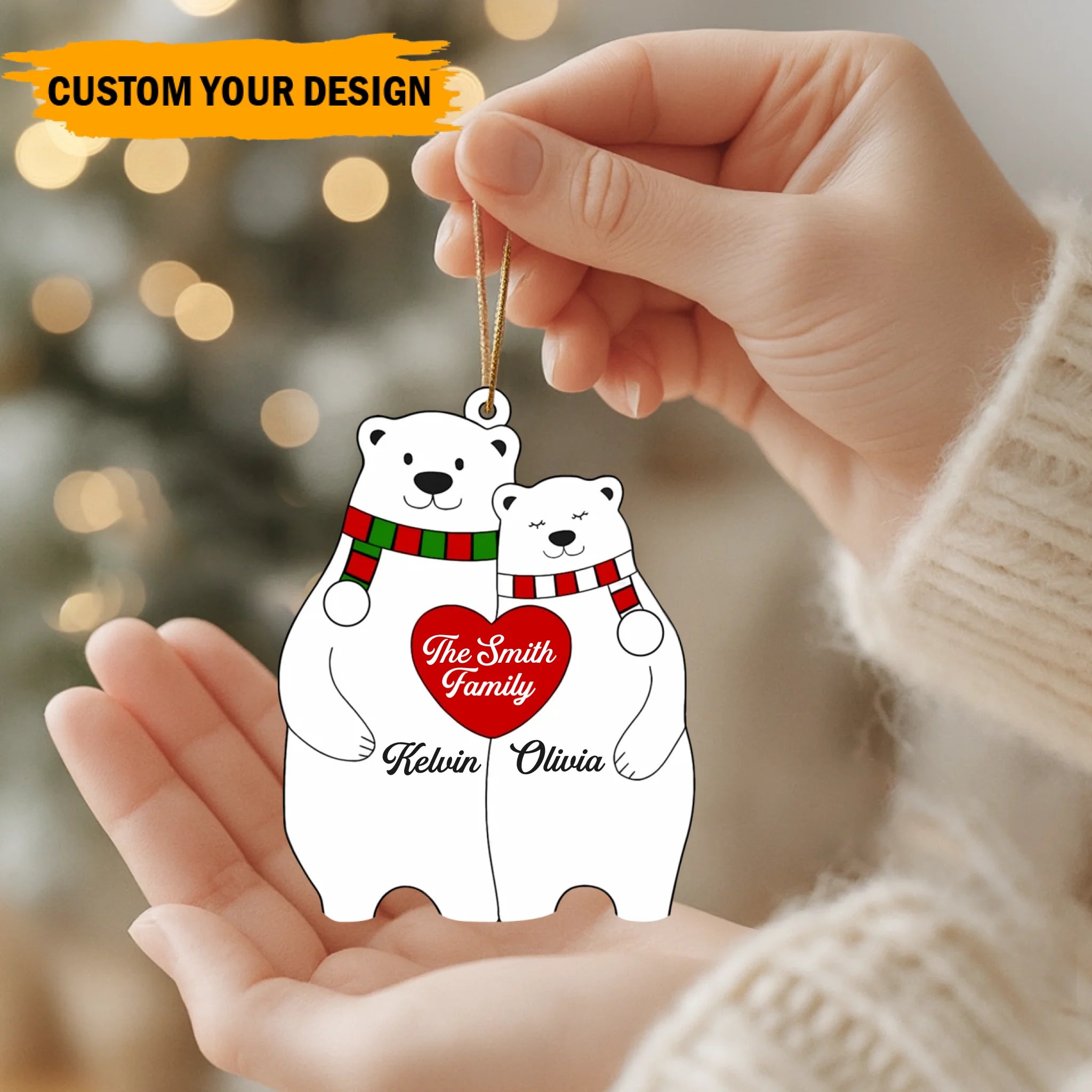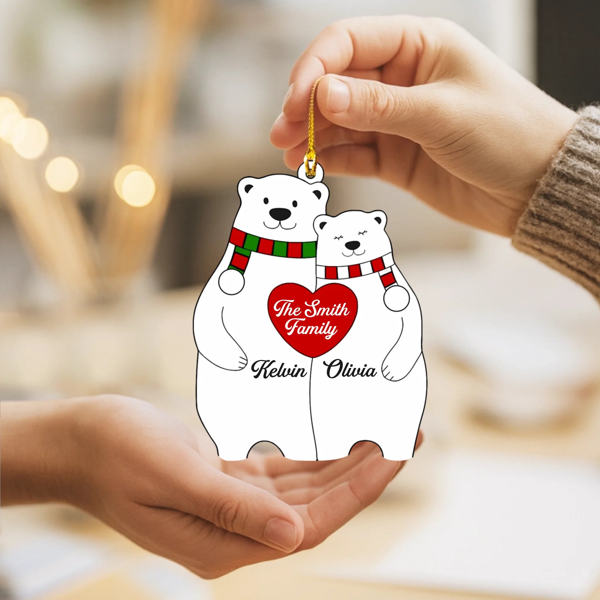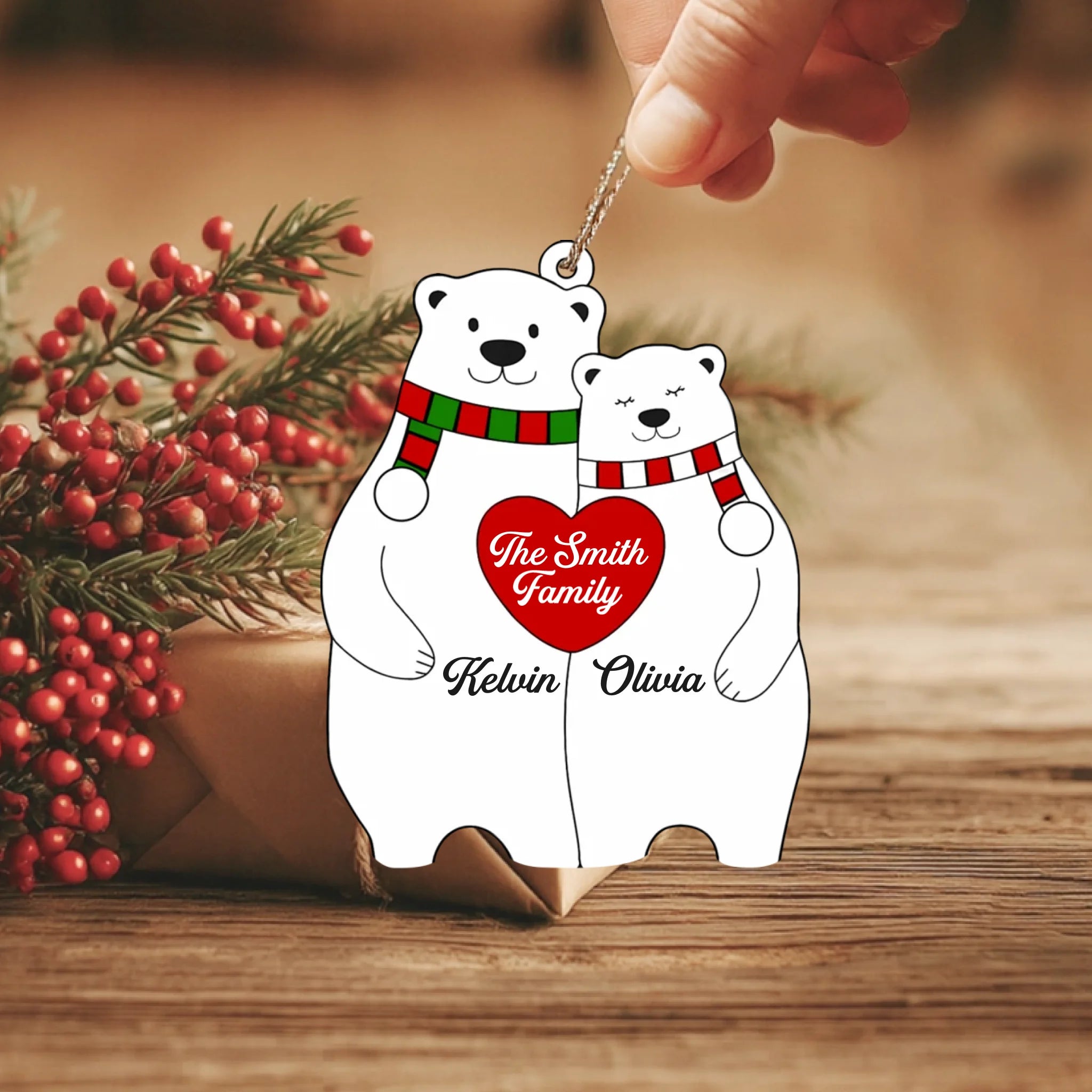 Personalized Bear Family Heart Christmas Acrylic Ornament