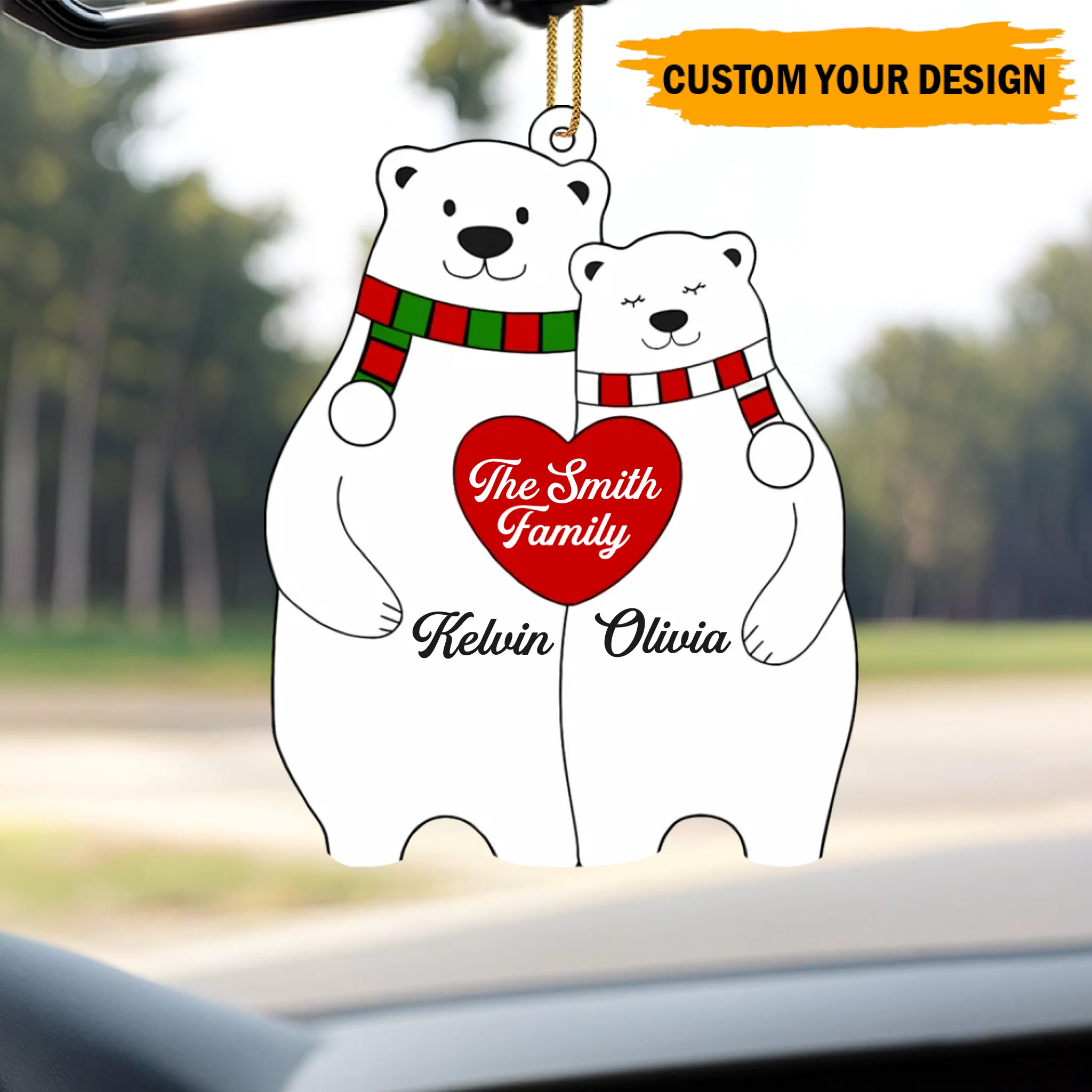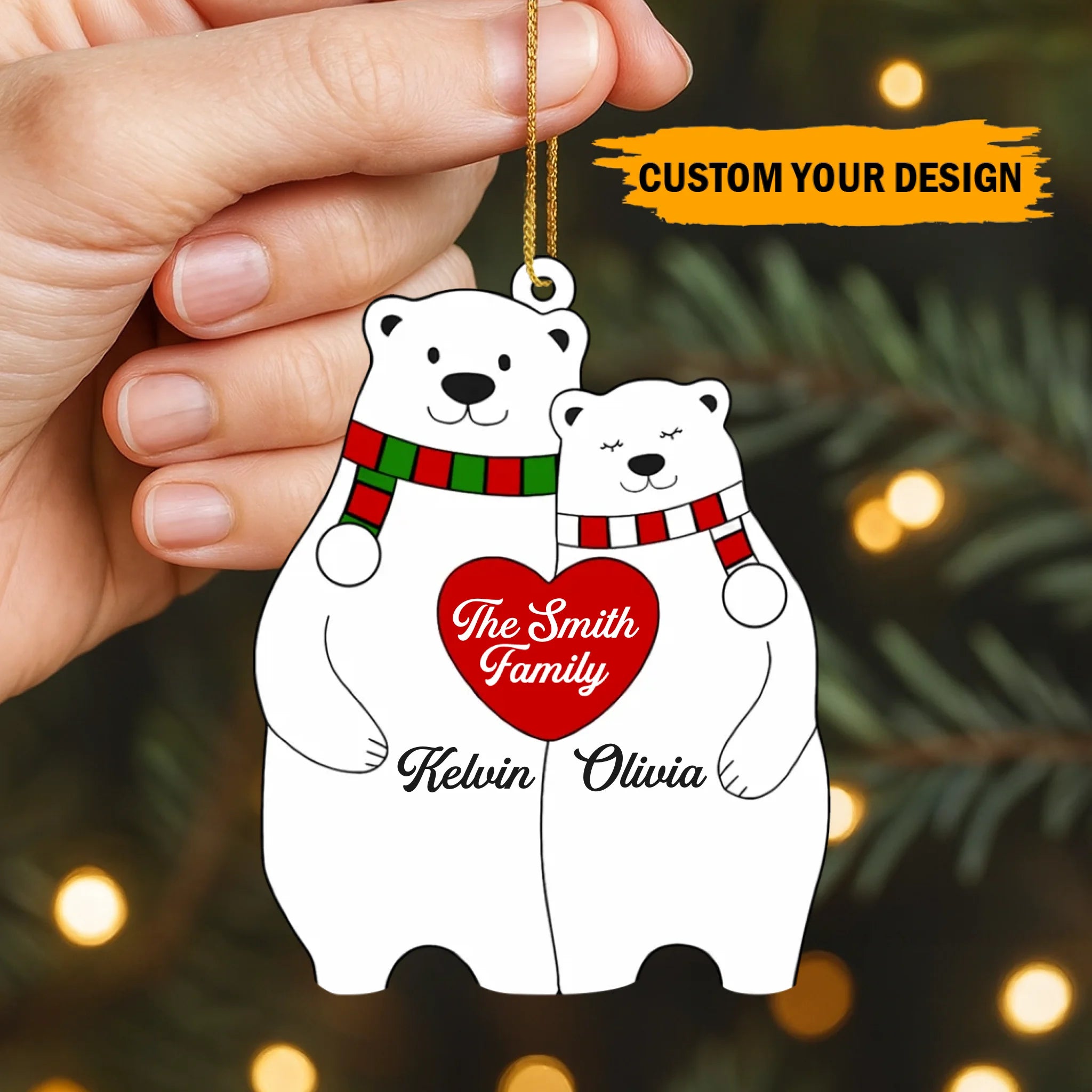 Personalized Bear Family Heart Christmas Acrylic Ornament – Custom Family Members & Names