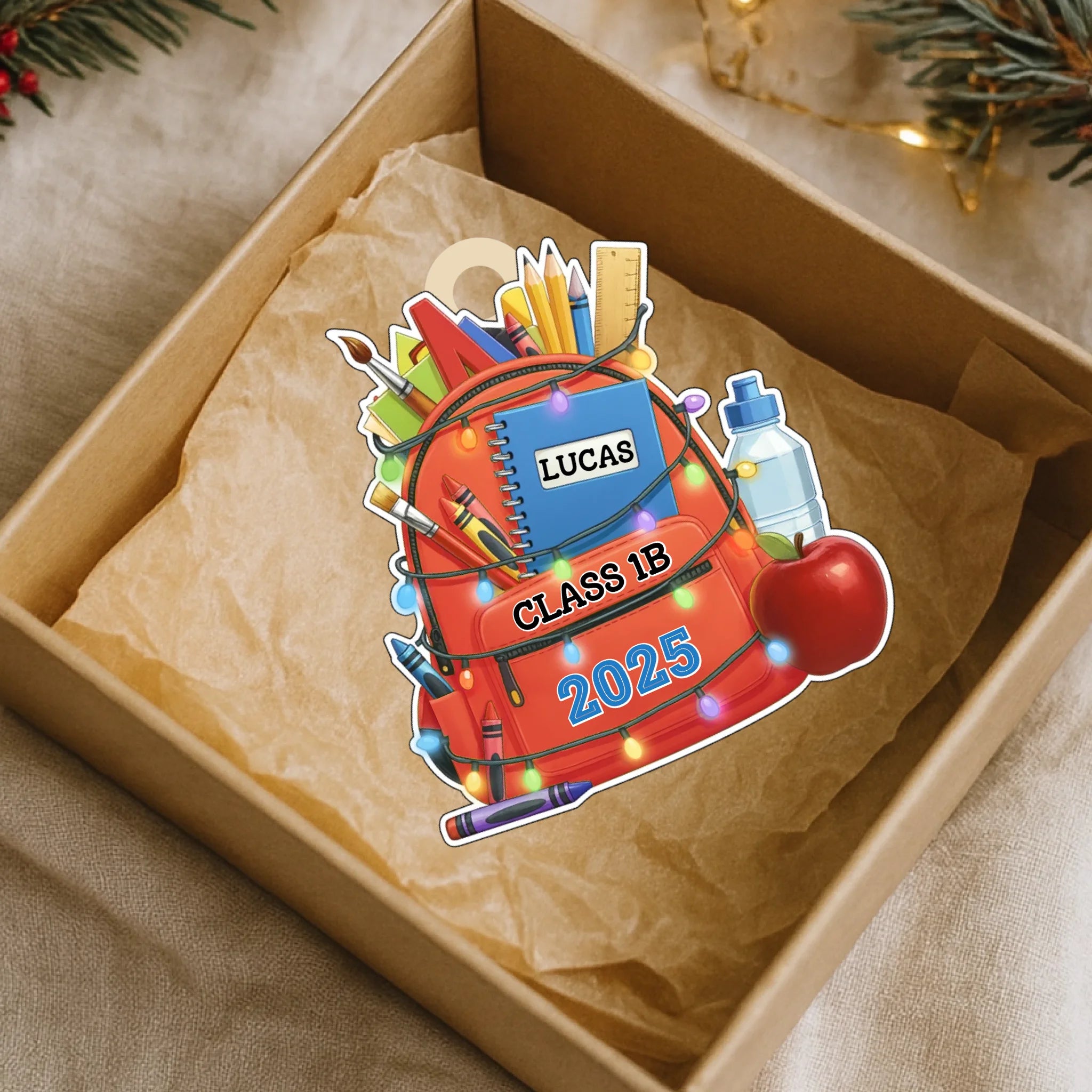 Personalized School Backpack Wooden Ornament – Custom Name & Class Keepsake for Kids | 2025 Edition