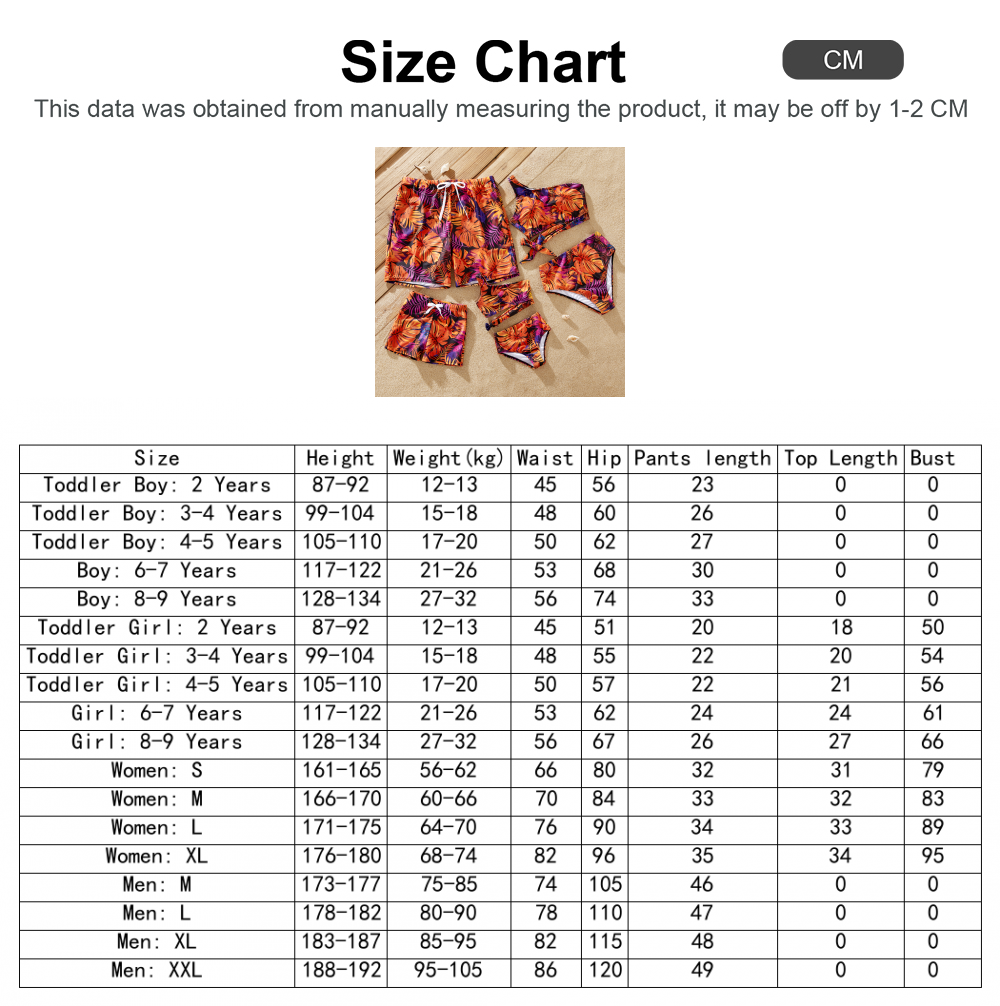 👉 Style : Imprimé tropical pour un look estival chic. 👉 Coupe : Coupe moyenne pour allier confort et style. 👉 Longueur : Regular pour s'adapter à toutes les envies. Faites sensation en famille : Que ce soit pour une sortie décontractée à la plage, une journée rafraîchissante à la piscine ou un pique-nique convivial, nos maillots de bain assortis pour toute la famille vous garantissent style, confort et souvenirs inoubliables à chaque instant.