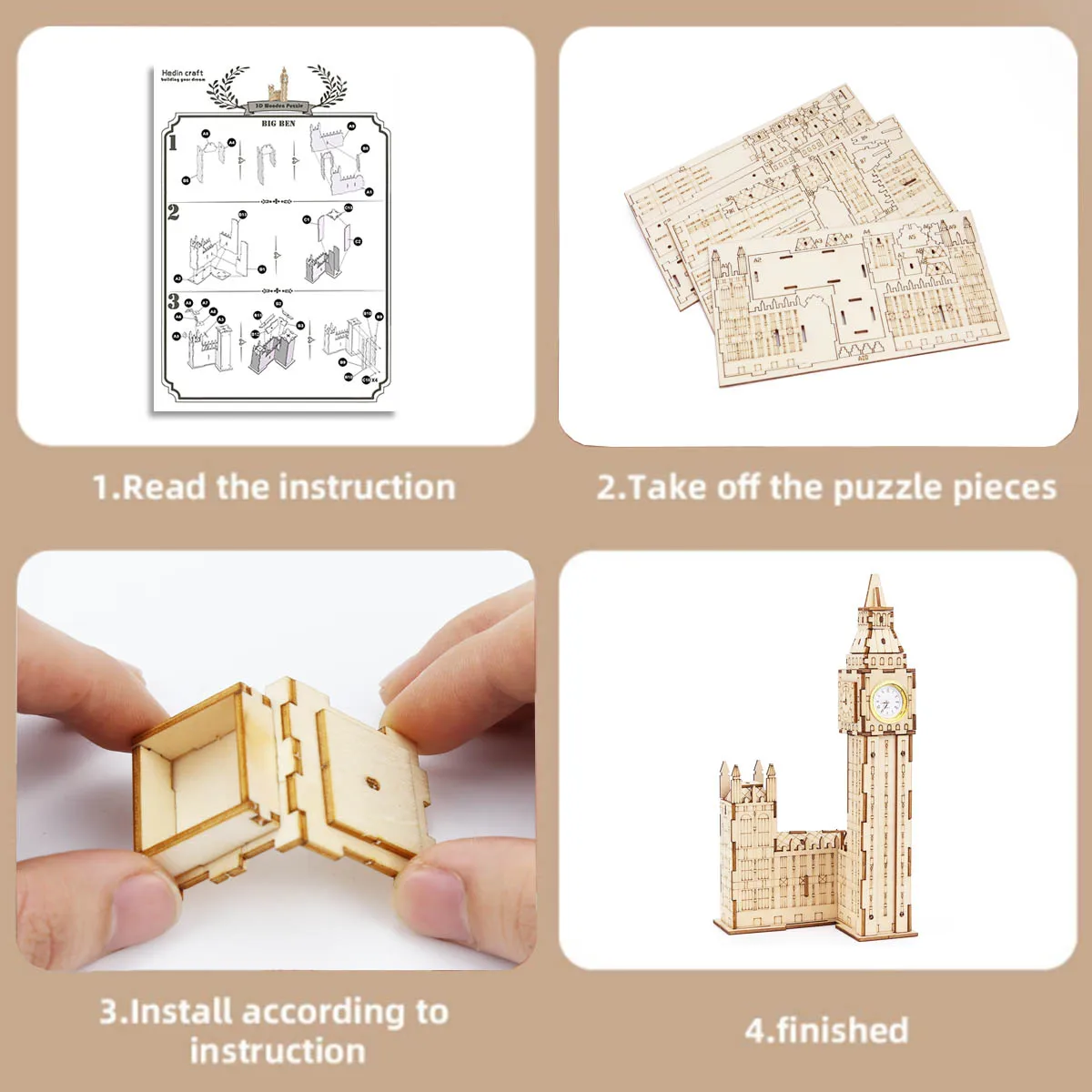 Puzzle 3D en bois | Horloge Big Ben | Décoration de chambre