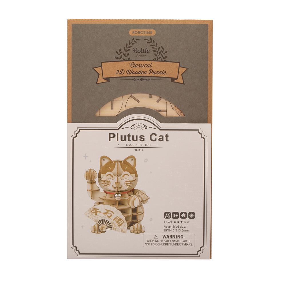 Puzzle 3D en bois | Plutus Cat | Cadeau pour enfants, adolescents et adultes