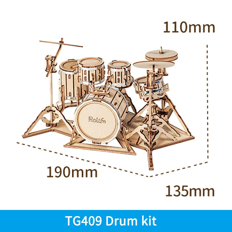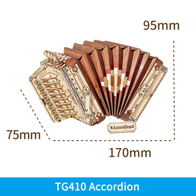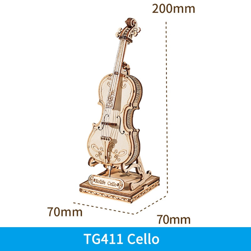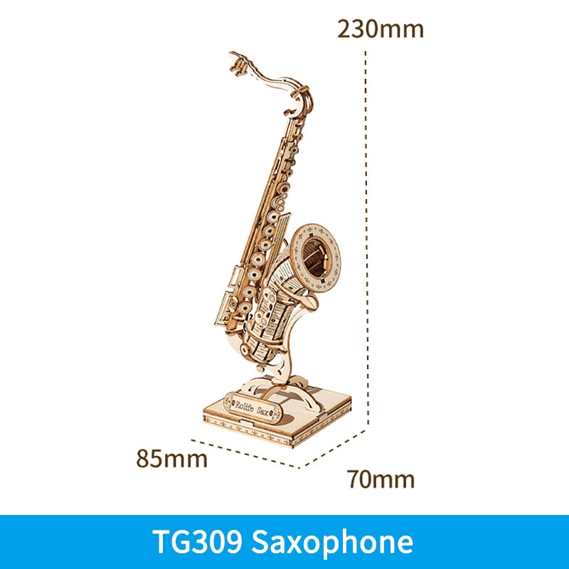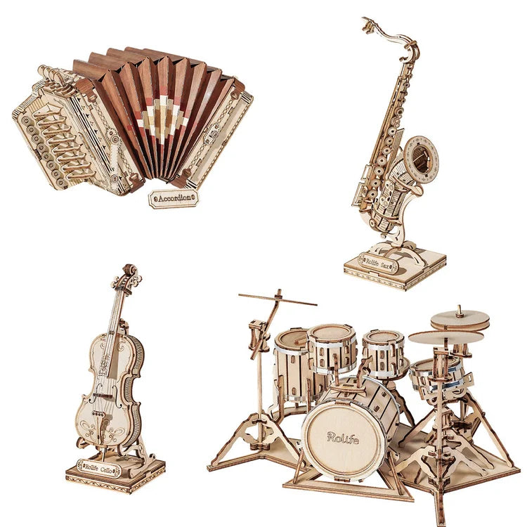 Puzzle 3D en bois | Saxophone, batterie, accordéon, violoncelle | Cadeau pour enfants et adultes