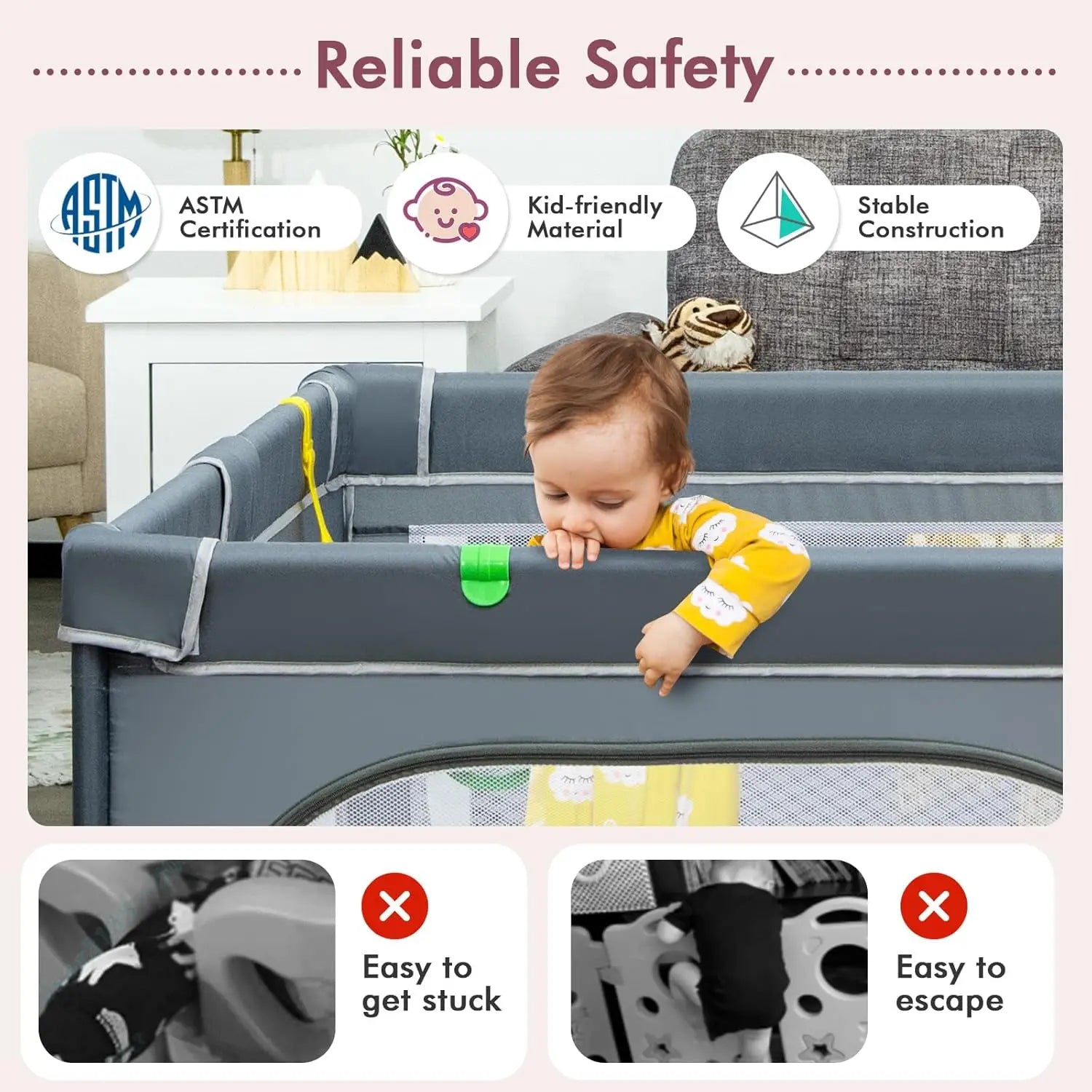Ce parc bébé extra-large offre suffisamment d'espace pour que votre enfant puisse bouger, ramper ou se reposer. Assez grand pour que plusieurs enfants puissent jouer ensemble grâce aux 50 balles océan incluses, réduisant ainsi le sentiment d'isolement et d'ennui. -