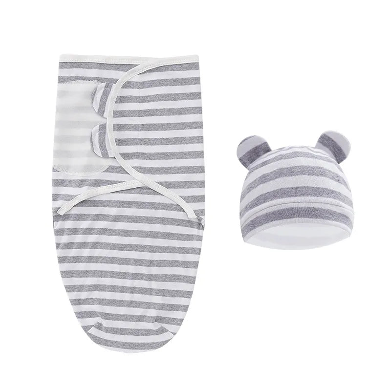 - Confort Ajustable : Cet ensemble comprend une couverture d'emmaillotage réglable pour un ajustement parfait. Le bonnet d'emmaillotage offre une couche de confort supplémentaire, assurant à votre bébé un sentiment de sécurité.