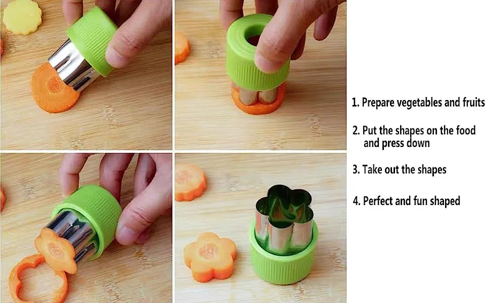 - Contenu du coffret : 12 mini-moules à légumes et Formes d'emporte-pièces pour fruits