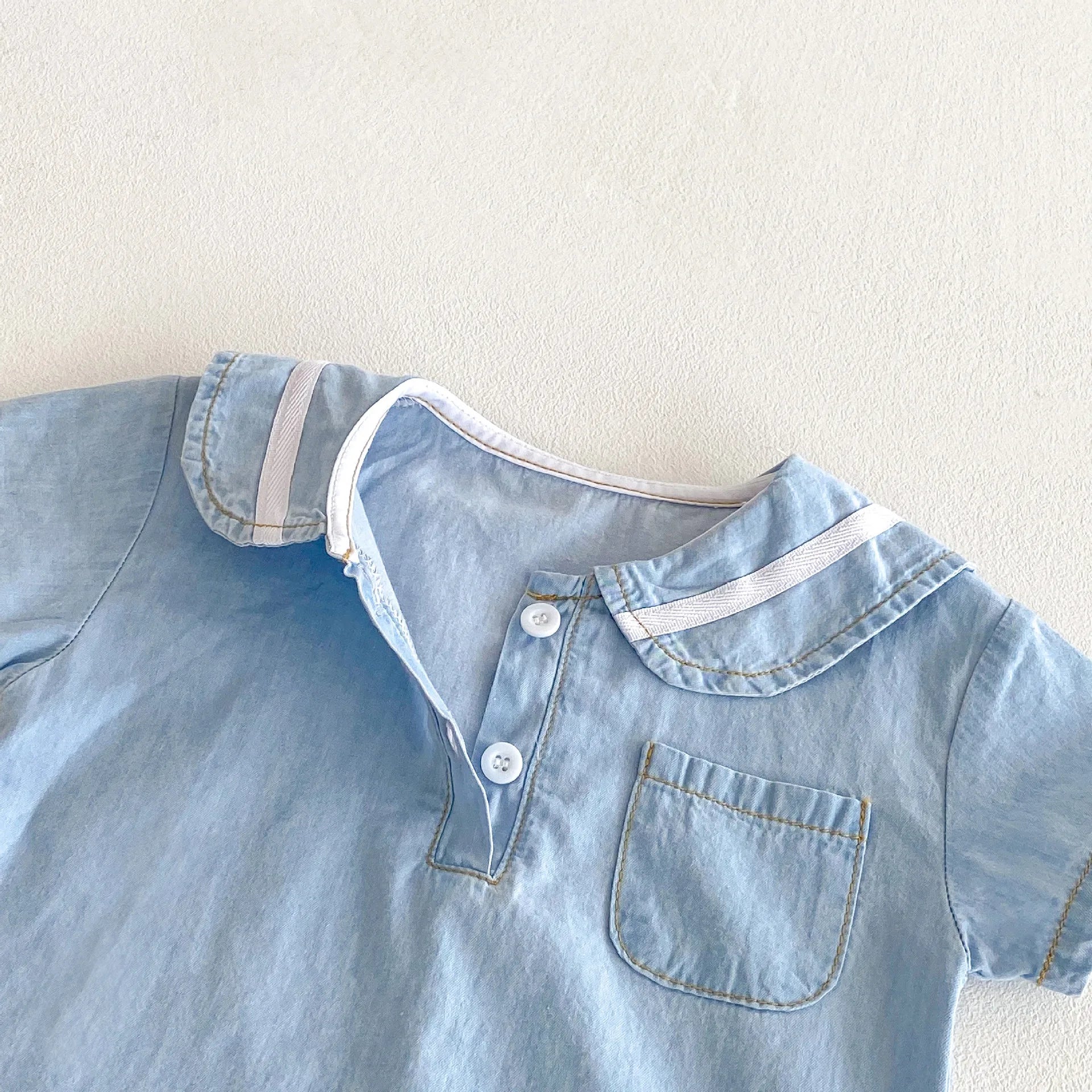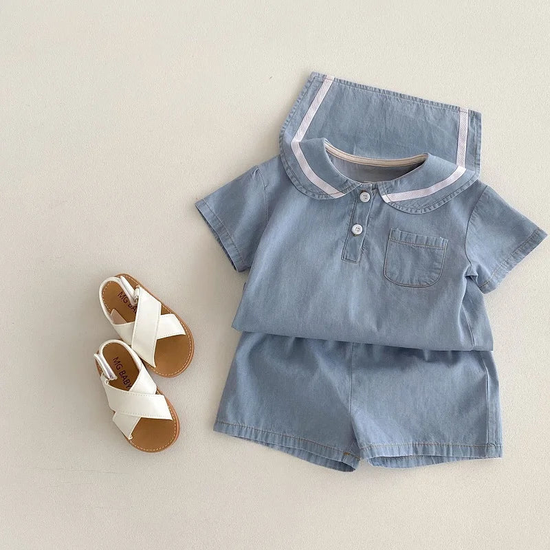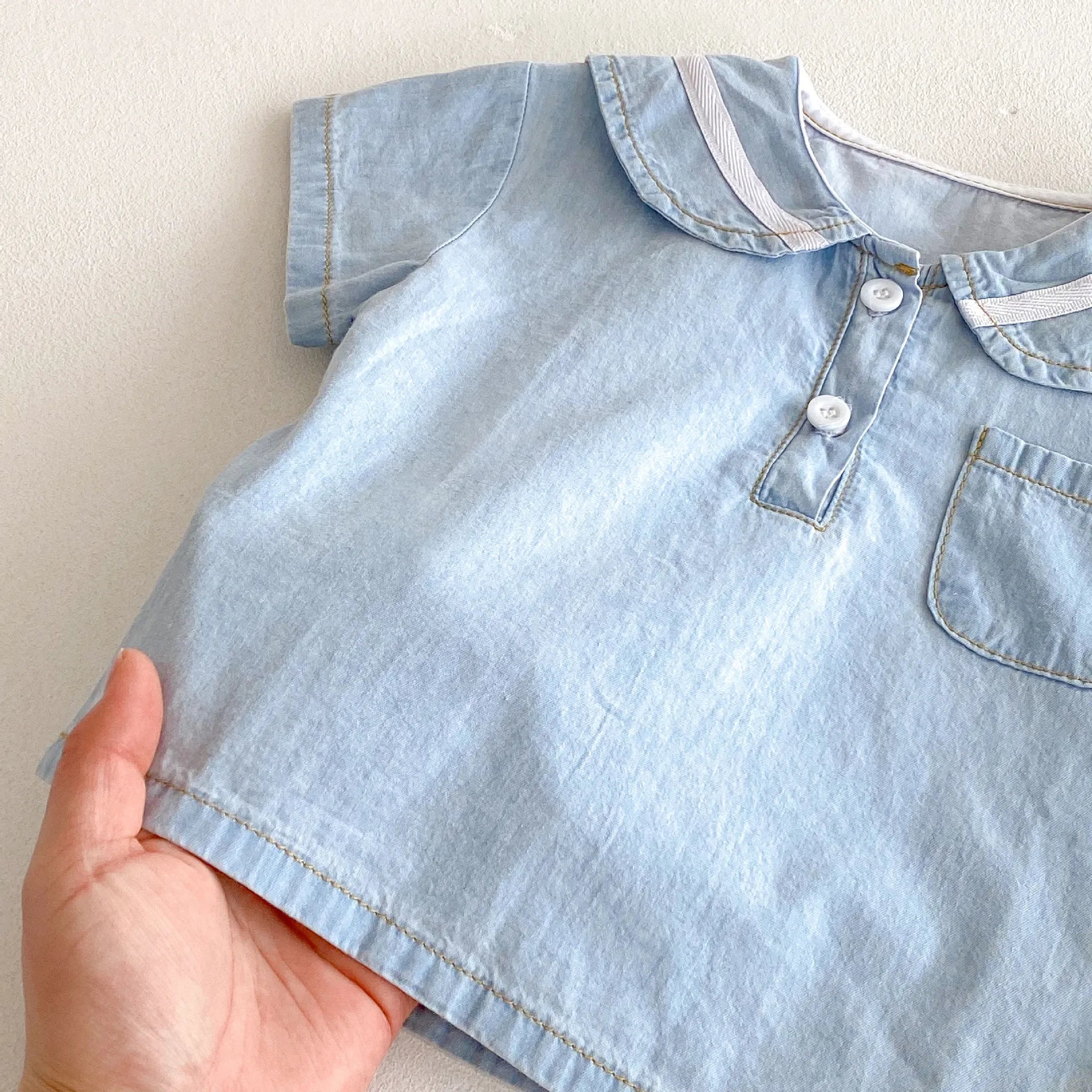 Cet été, offrez à votre enfant un style frais et respirant ! Cet adorable ensemble deux pièces en jean comprend une chemise à col marin et un short assorti, parfait pour les jeux, les promenades ou les journées ensoleillées. 🌞