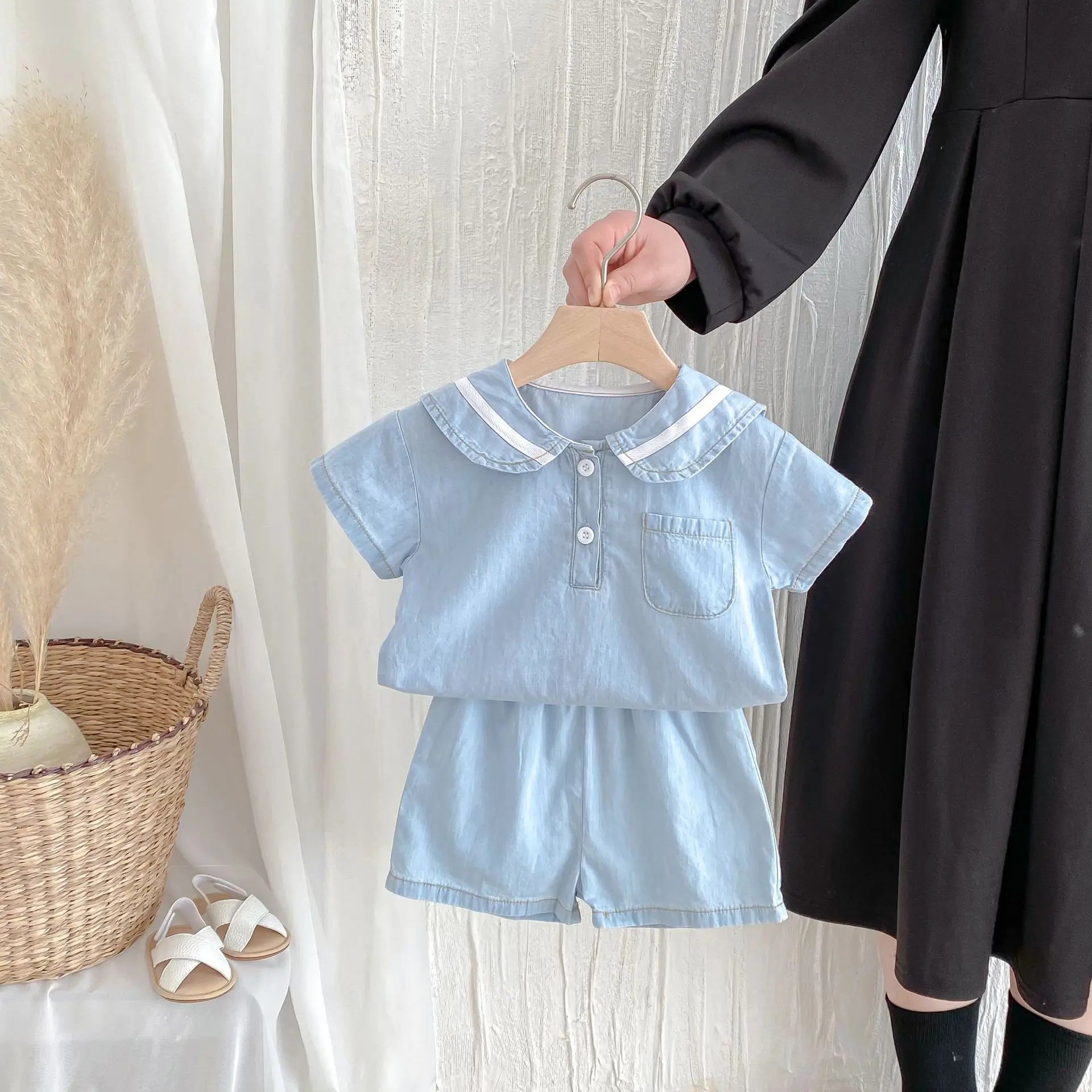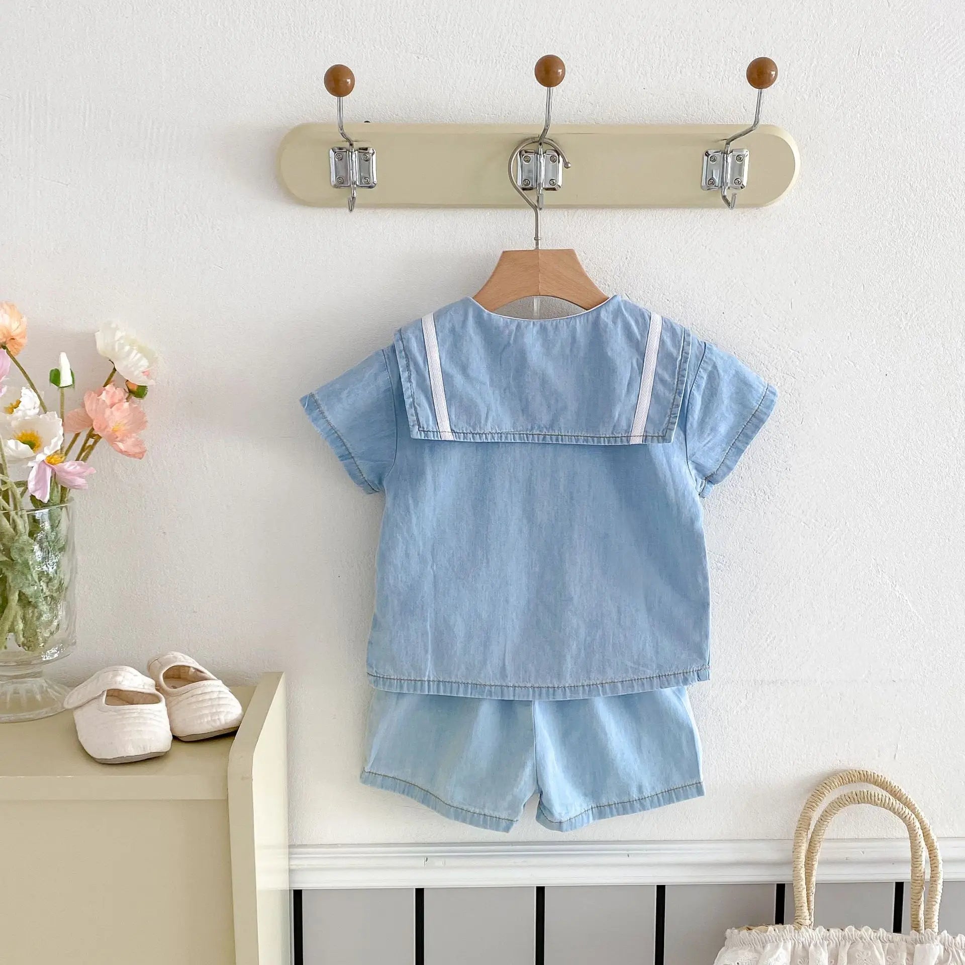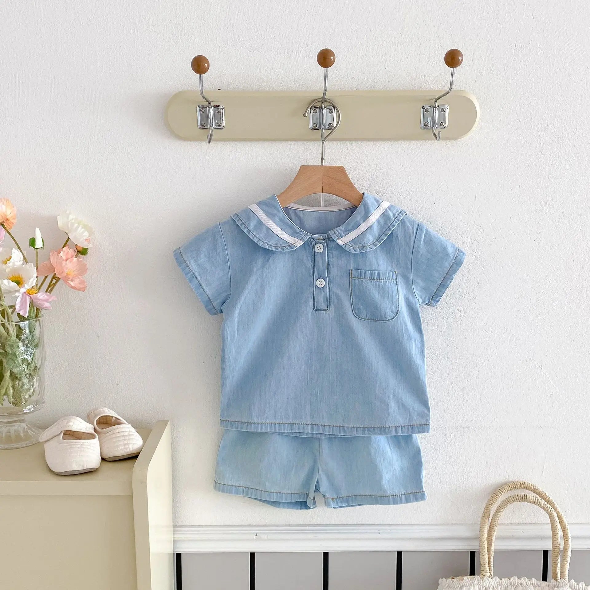 Cet été, offrez à votre enfant un style frais et respirant ! Cet adorable ensemble deux pièces en jean comprend une chemise à col marin et un short assorti, parfait pour les jeux, les promenades ou les journées ensoleillées. 🌞