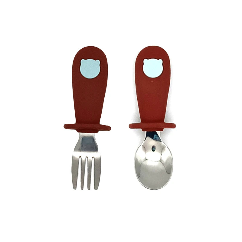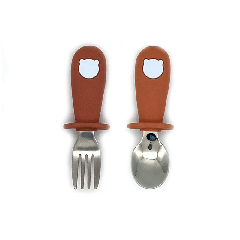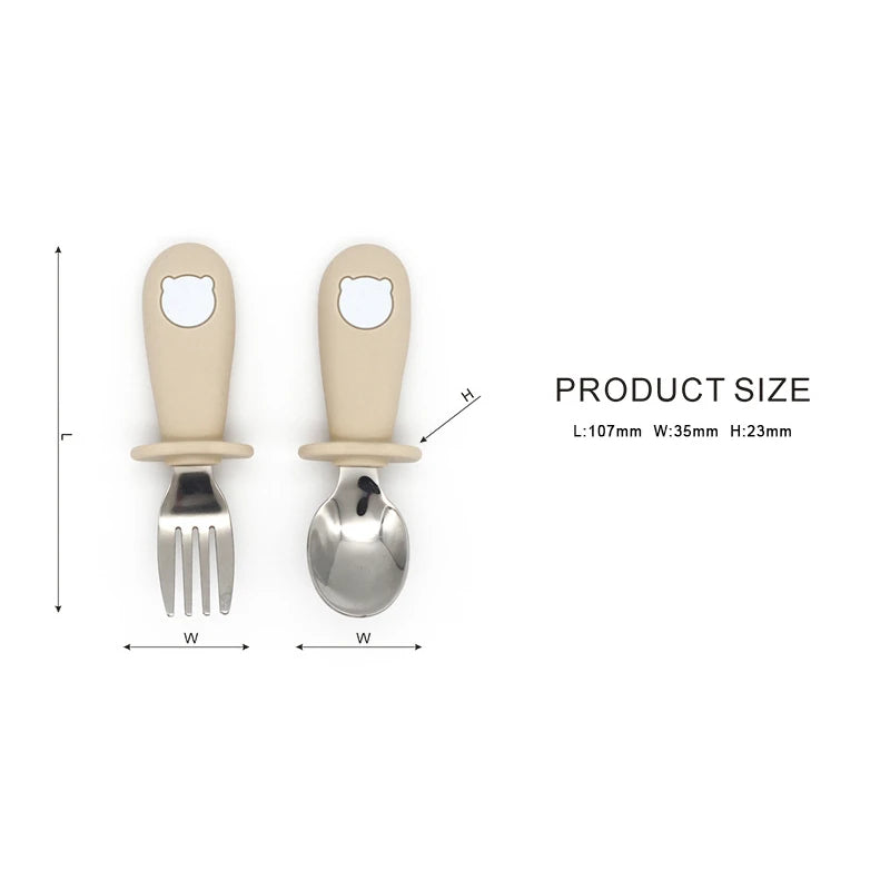 Lot de 2 couverts en silicone pour bébé : cuillère et fourchette en acier inoxydable pour tout-petits