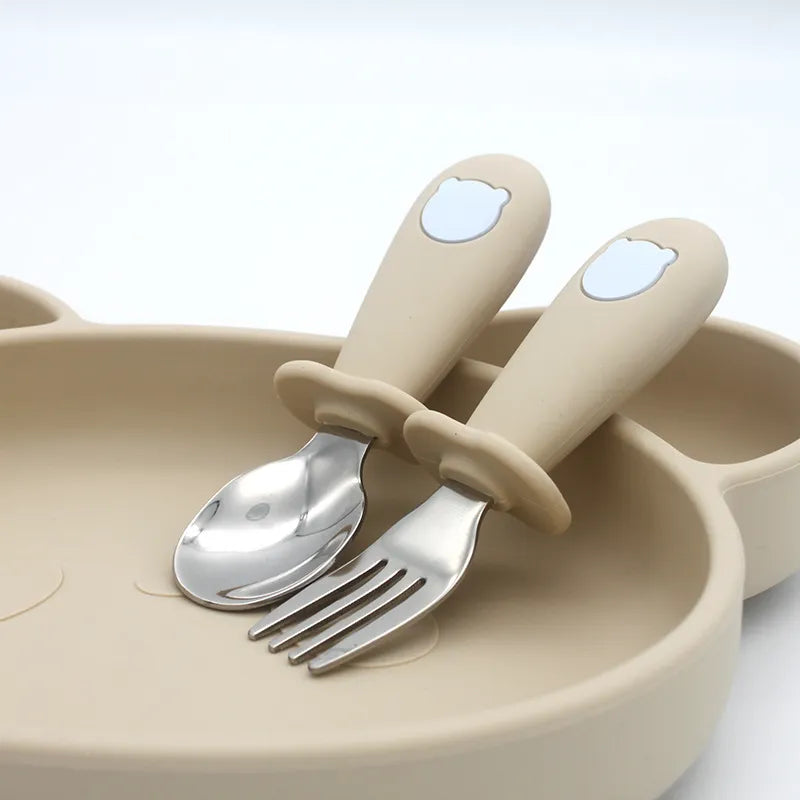 Découvrez notre ensemble de couverts en silicone pour bébé (2 pièces) : les couverts parfaits pour les tout-petits !