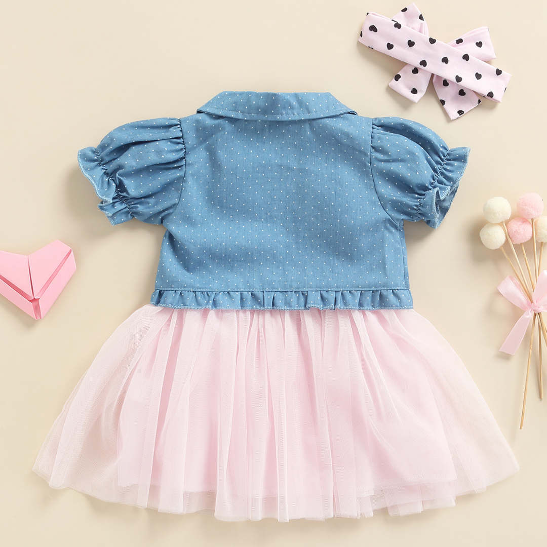 - 3 pièces : Robe sans manches en tulle, veste en jean et bandeau.