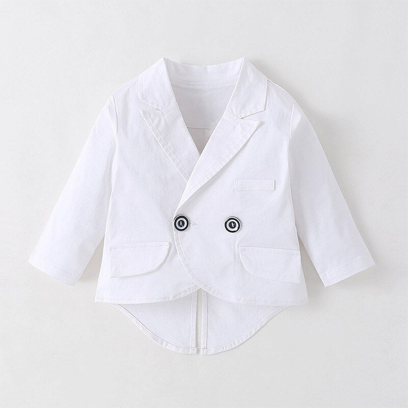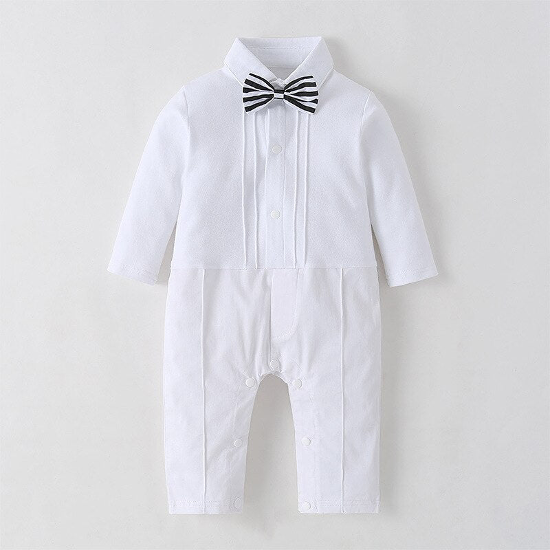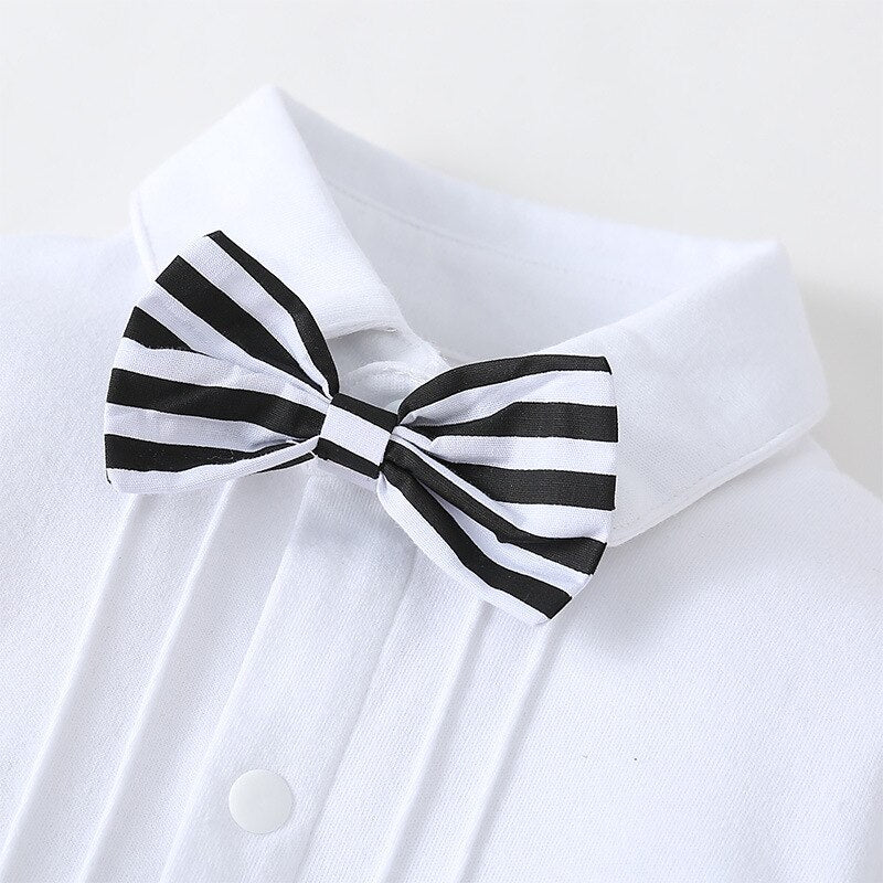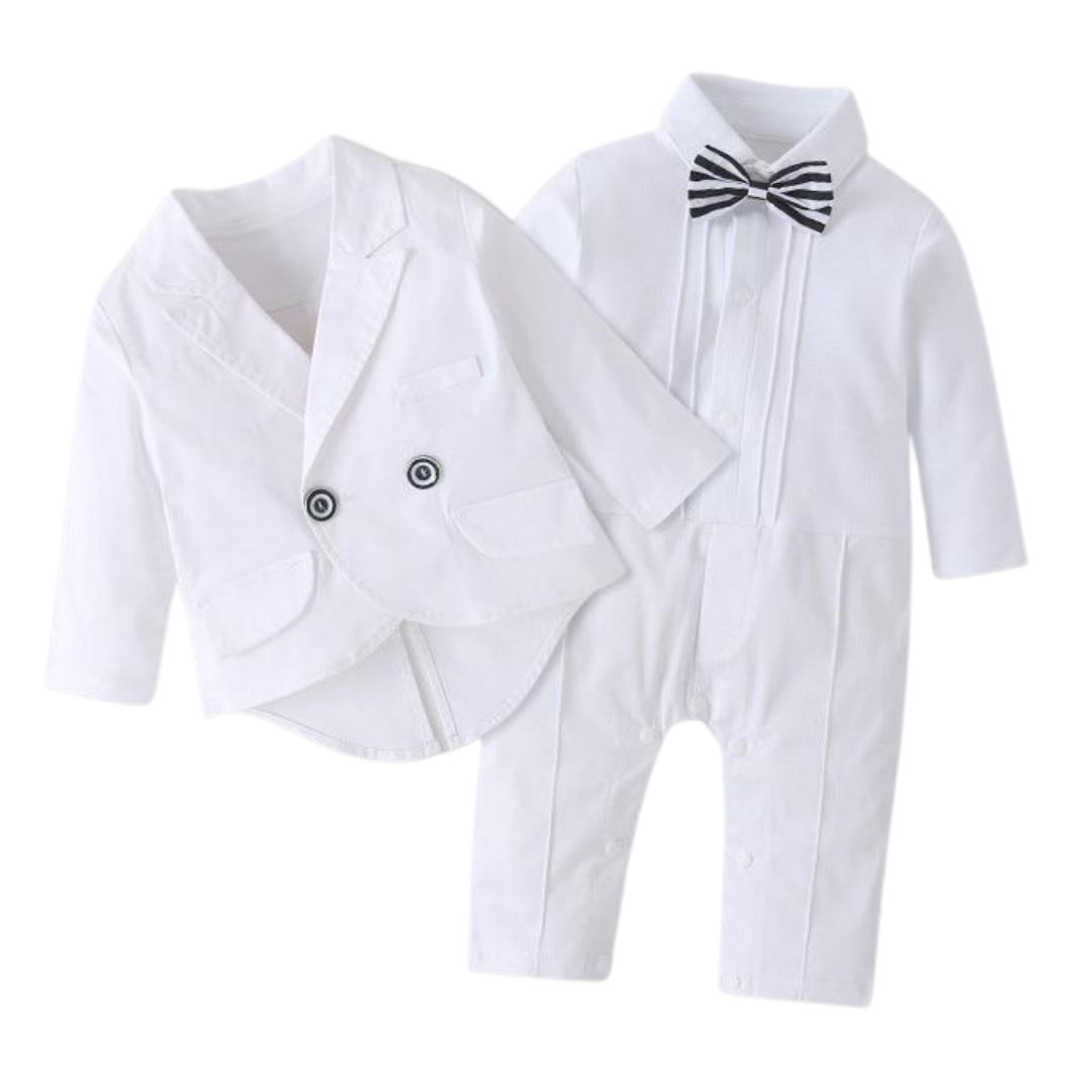 Ensemble 3 pièces pour nouveau-né, barboteuse et blazer blancs style smoking