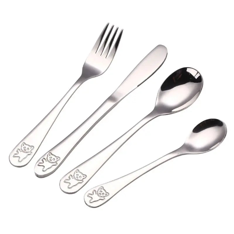 Ensemble d'ustensiles en acier inoxydable pour bébé, 4 pièces
