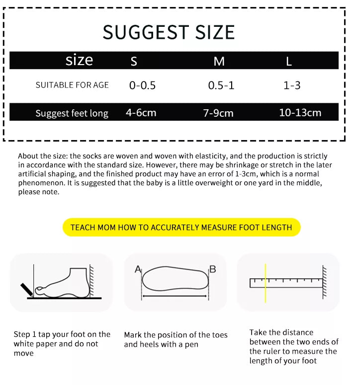 Embarquez pour un voyage de confort et de style avec nos chaussettes nouveau-né en coton épais de haute qualité, motif dessin animé. Confectionnées avec le plus grand soin, ces chaussettes sont conçues pour offrir chaleur et confort à vos tout-petits, garantissant le confort de leurs petits pieds.