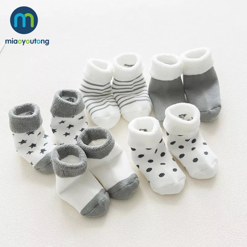 Découvrez nos 5 paires de chaussettes premium en coton épais et confortable pour nouveau-né Chaussettes
