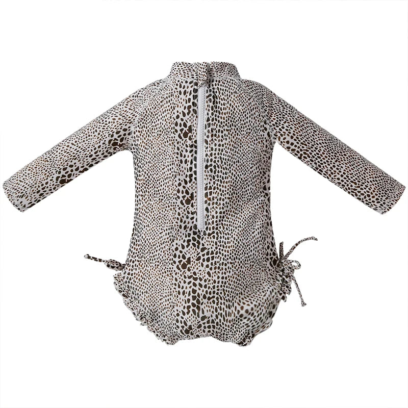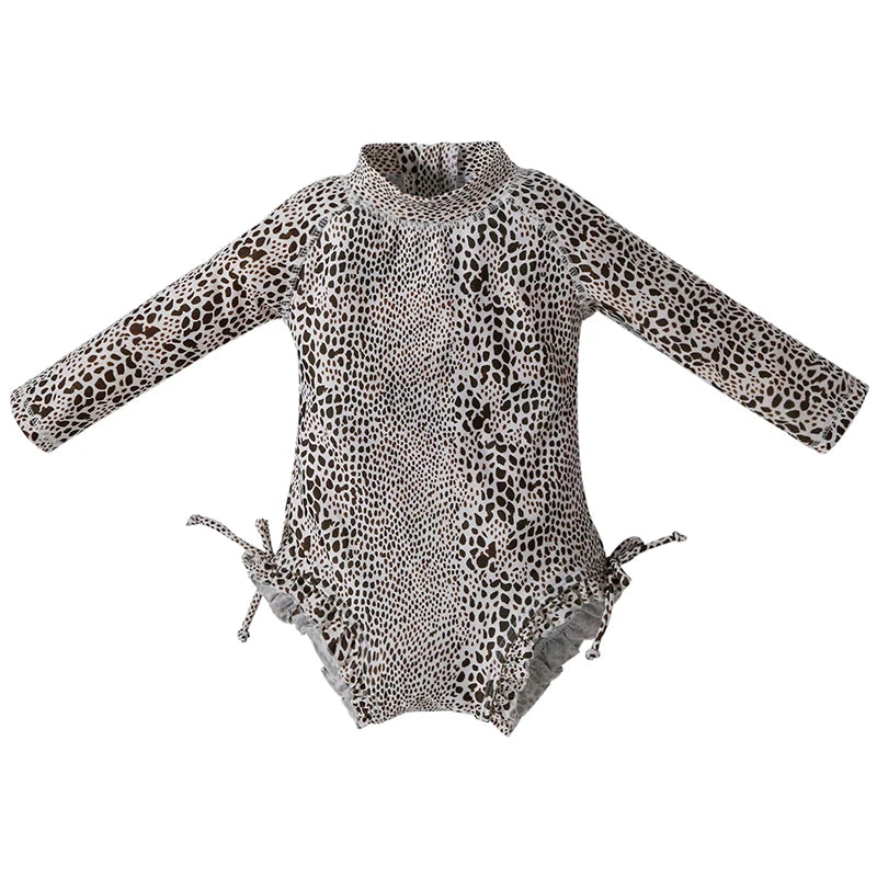 Faites sensation cet été avec notre ravissant maillot de bain manches longues pour bébé fille. Fabriqué en polyester de haute qualité, ce maillot de bain est non seulement tendance, mais offre également une protection solaire et un confort optimal à votre petite fille.