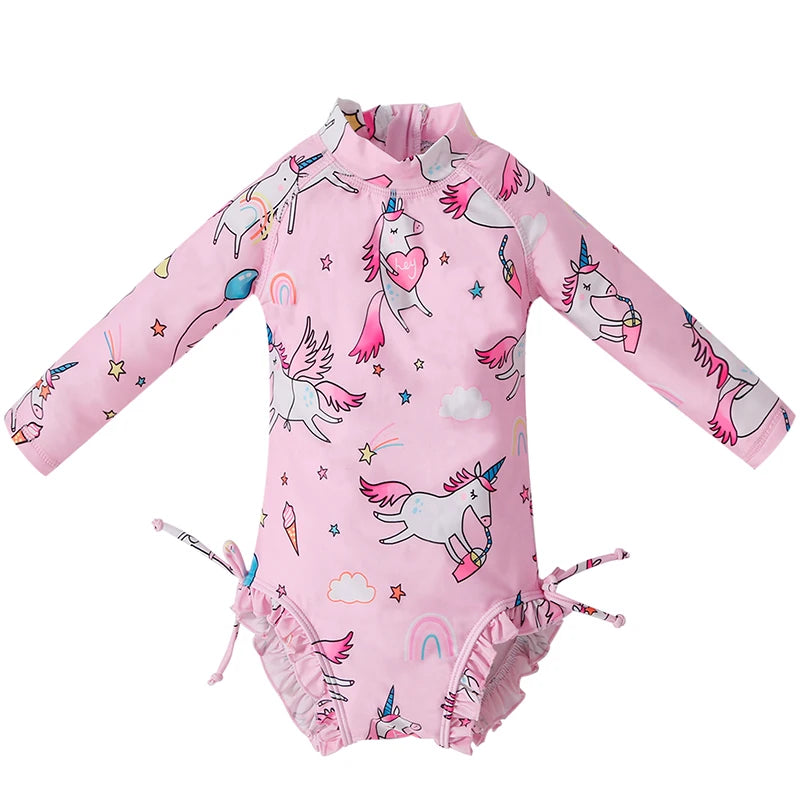 Découvrez le maillot de bain manches longues pour bébé fille - Une jolie tenue de piscine
