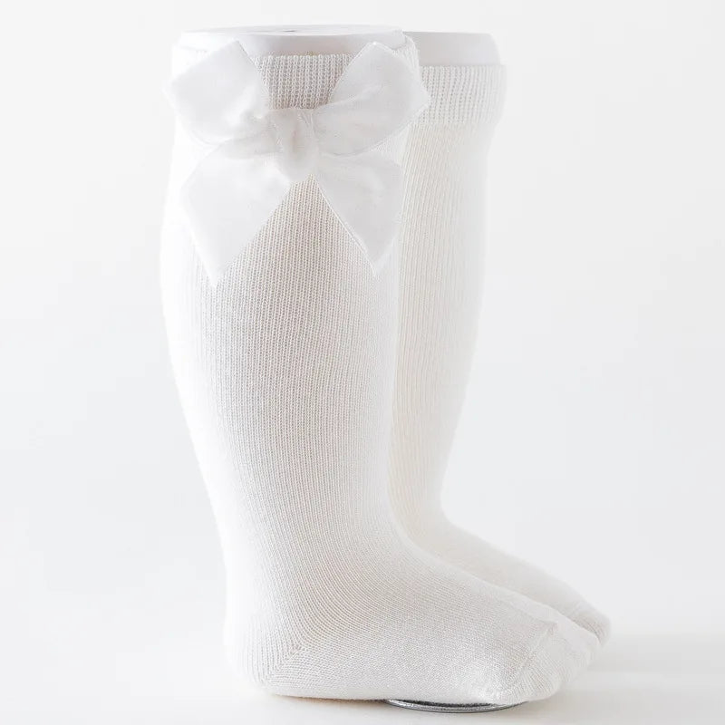 Que ce soit par une fraîche matinée de printemps ou une fraîche journée d'automne, ces chaussettes hautes à nœud sont le complément idéal à la tenue de votre bébé.