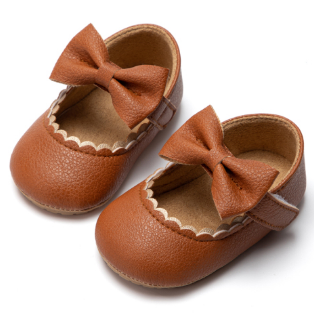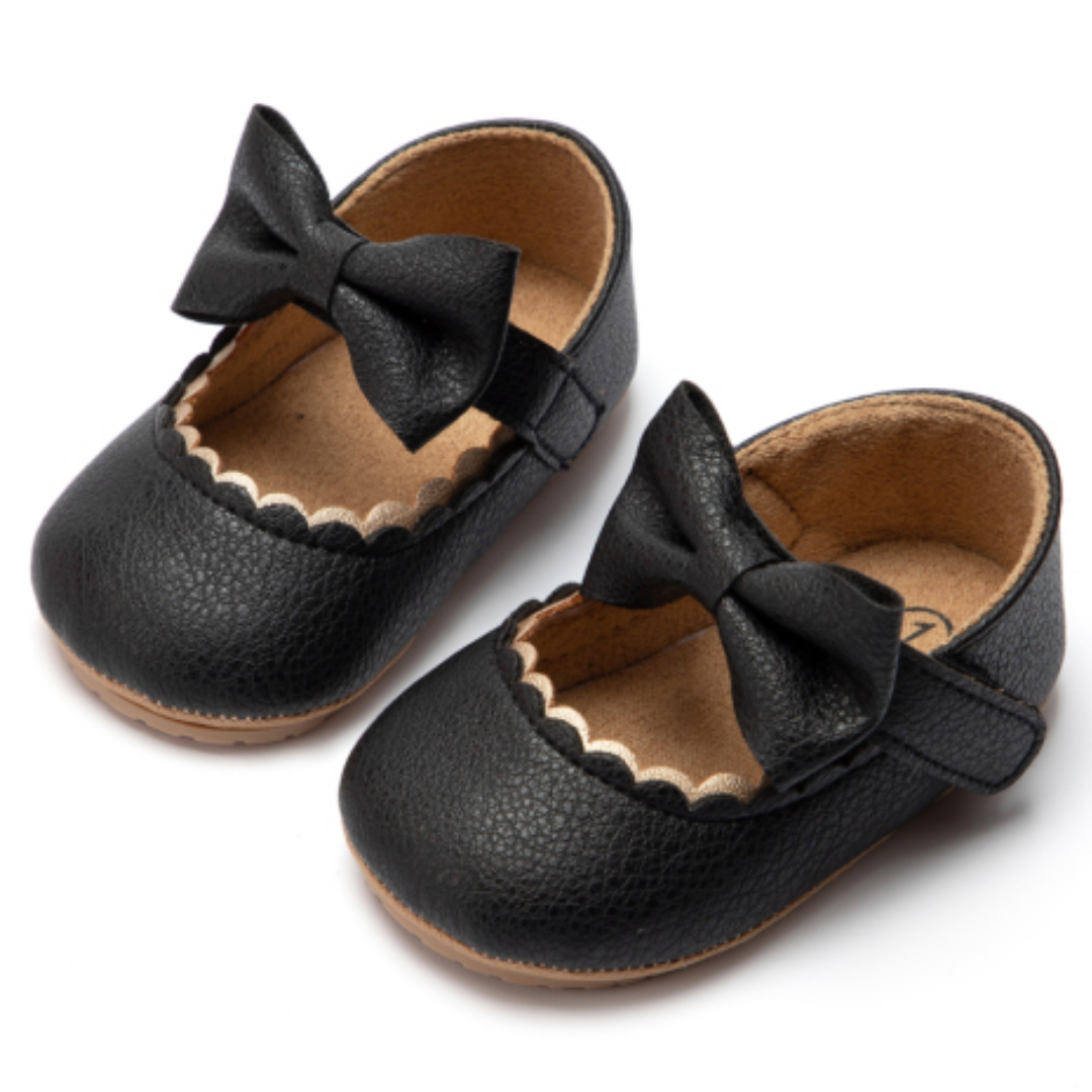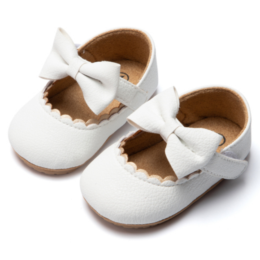 Chaussures plates en caoutchouc à semelle souple pour bébé fille avec nœud papillon