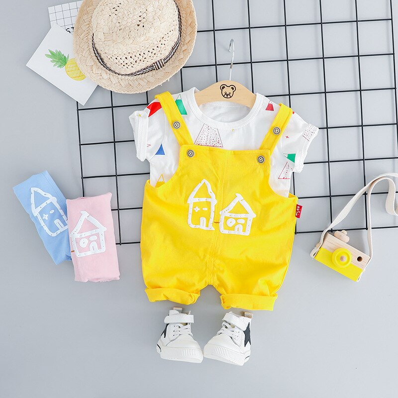 La combinaison a un design tendance qui la rend stylée à porter. Elle peut aussi être assortie avec d'autres T-shirts et tenues. Les dessins de petites maisons sont enfantins et les enfants les trouvent adorables. Le T-shirt a un thème coloré qui égaye l'ambiance lors des chaudes journées d'été. Tenue estivale parfaite pour vos petits.
