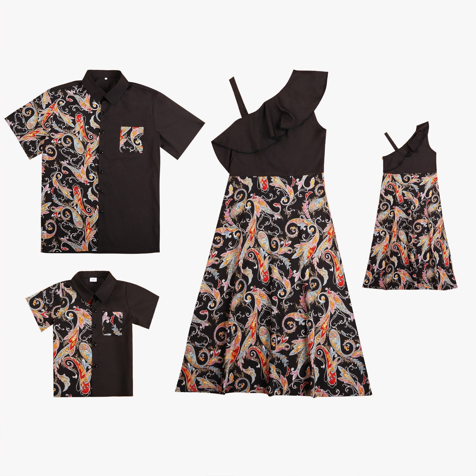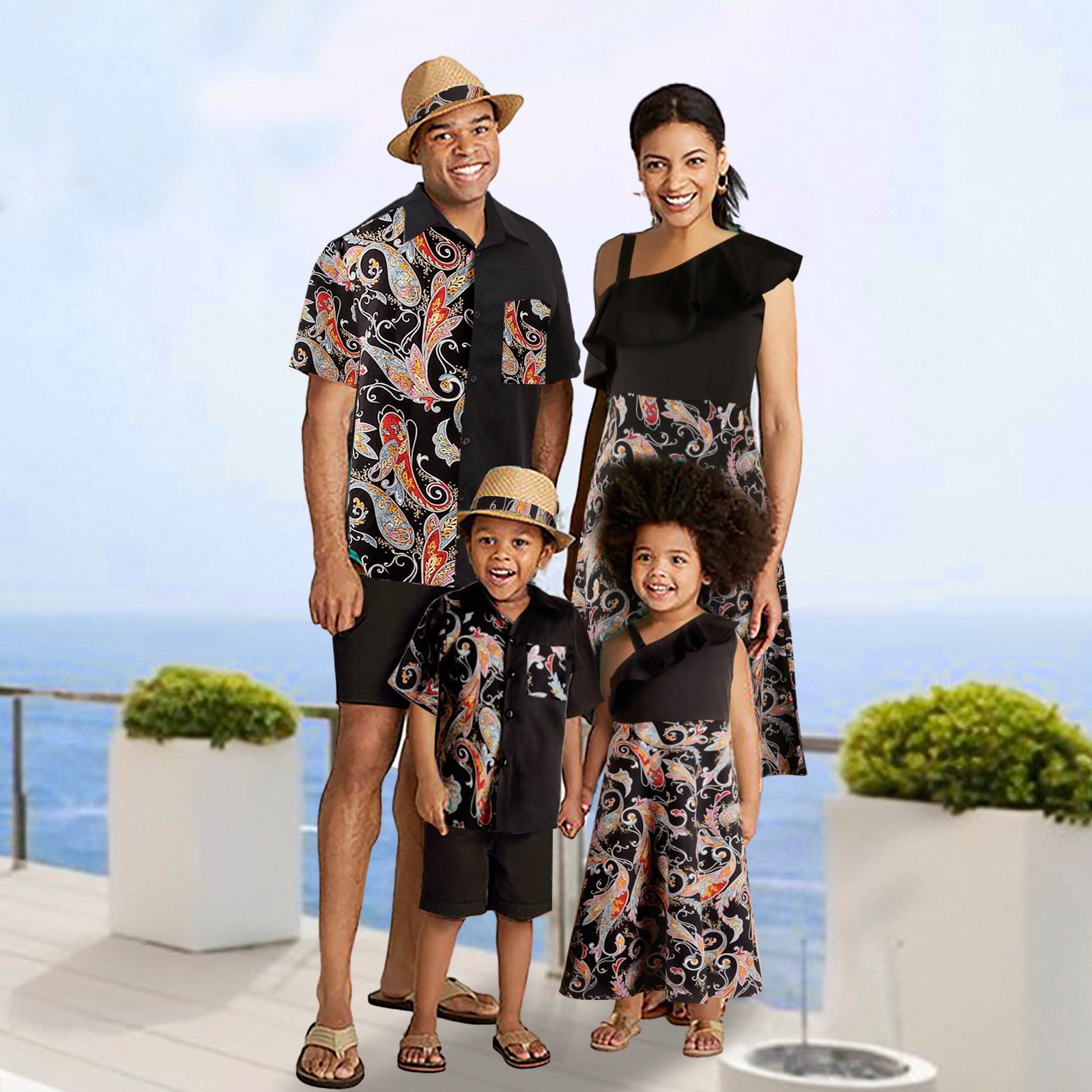 Ensemble de vêtements pour toutes les familles, idéal pour les vacances. Avec des textures uniques et raffinées, ainsi que des designs modernes et tendance. La couleur principale, un noir mystérieux, mettra en valeur la personne qui la porte.