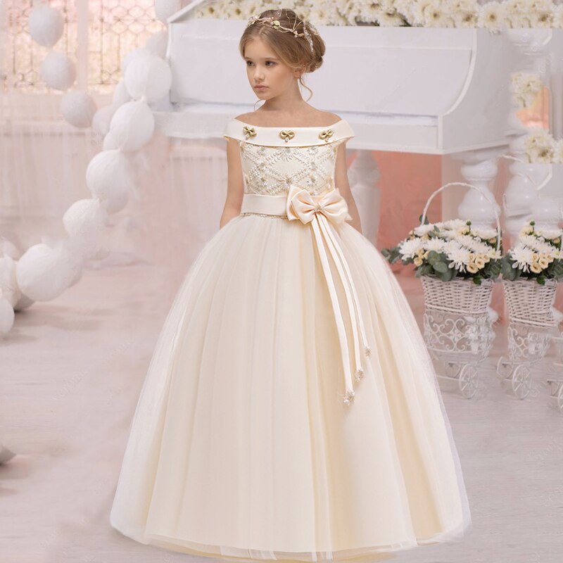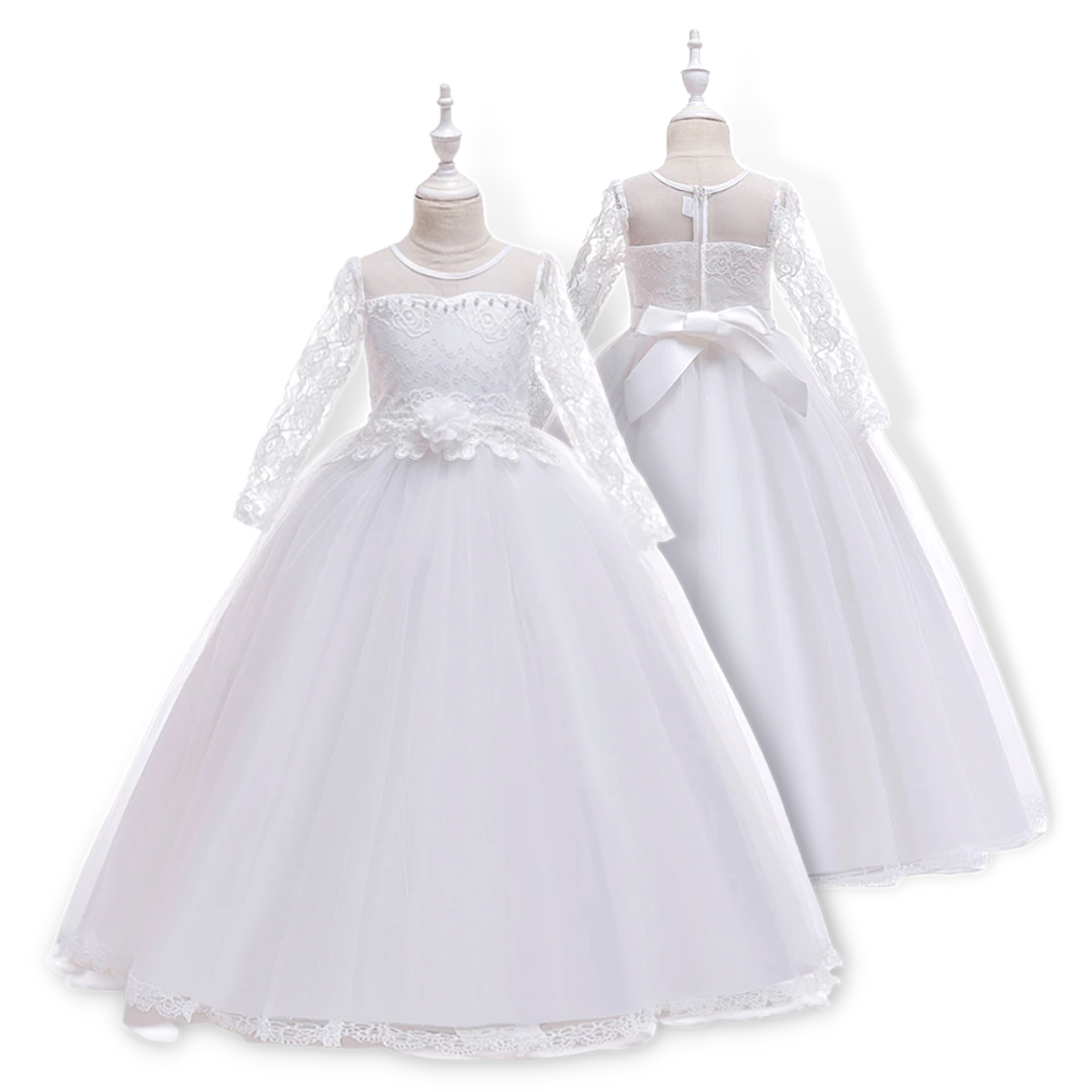 Robe blanche élégante à manches longues et haut en dentelle florale pour filles