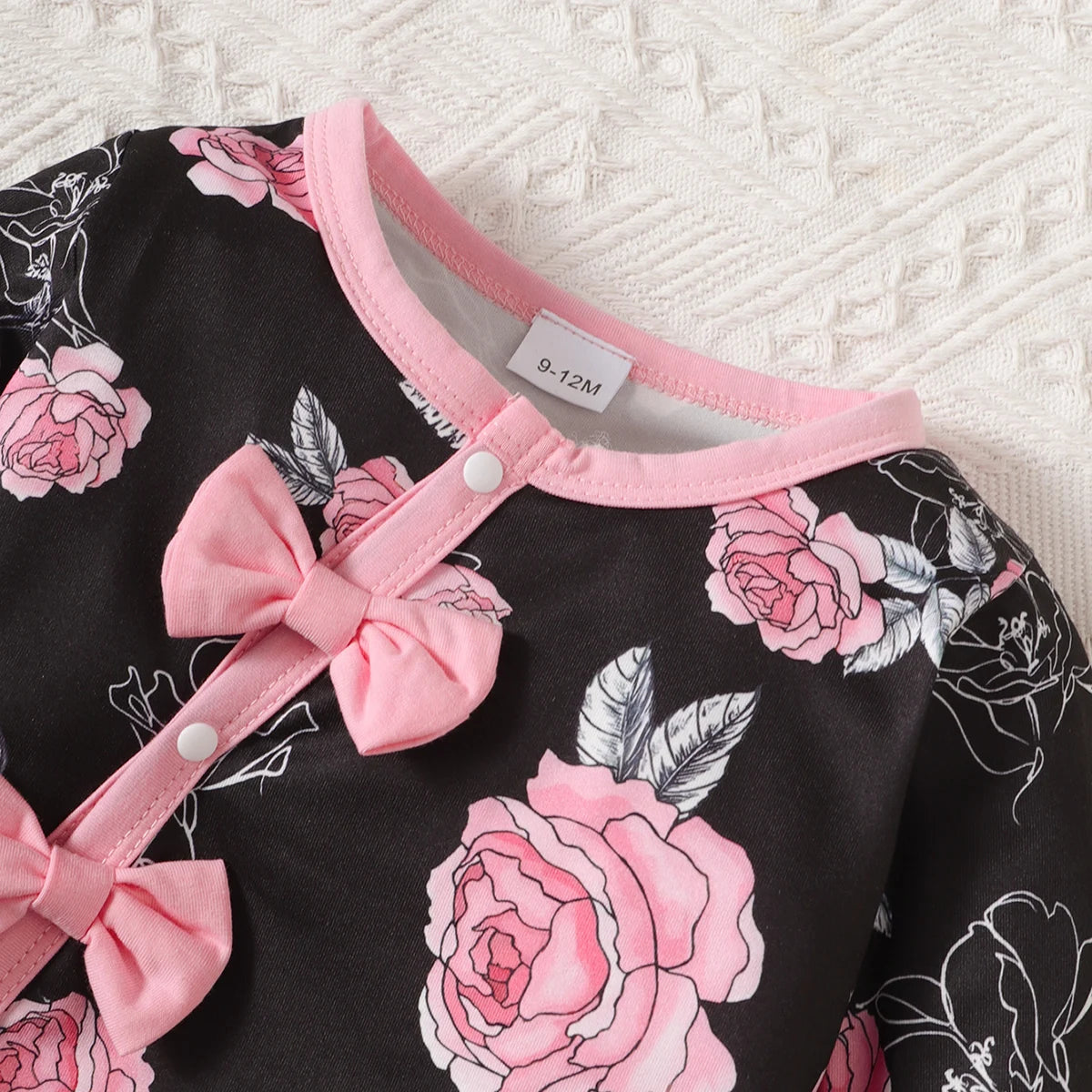 Body à imprimé floral et nœud papillon - Mignon et décontracté