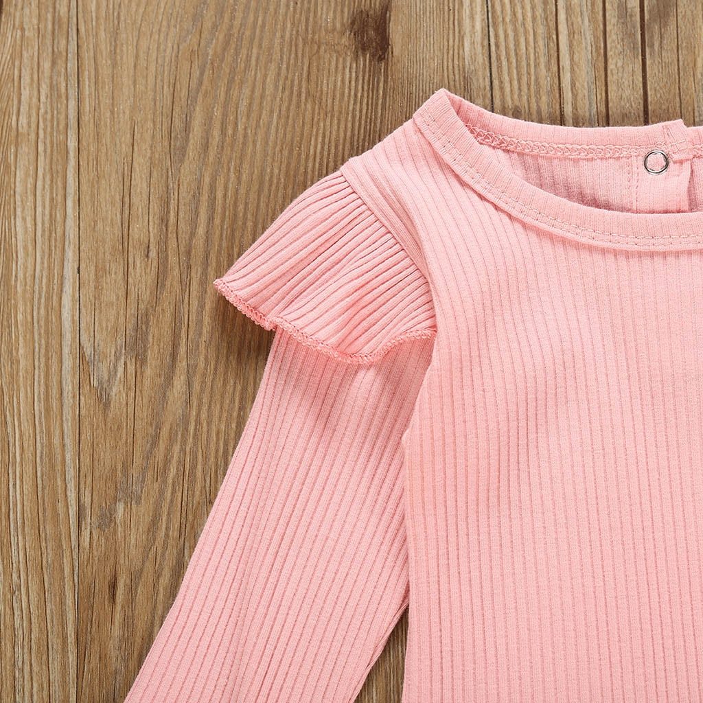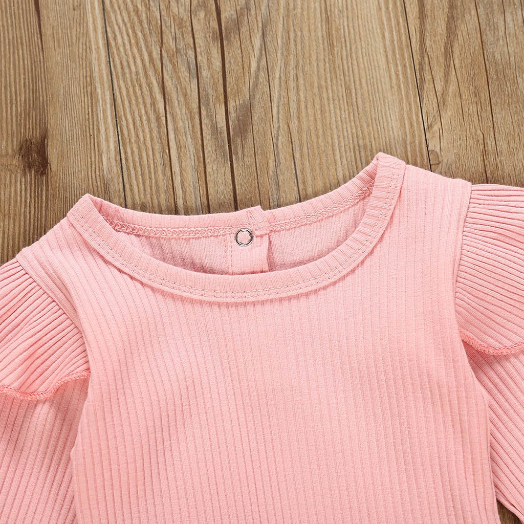 Le body possède des épaules à volants et des manches longues lui donnant un look tendance. Les boutons-pression rendent les changements de couche rapides et les boutons au dos permettent un habillage facile. Le tissu en mélange de coton rend la tenue idéale pour les activités extérieures.