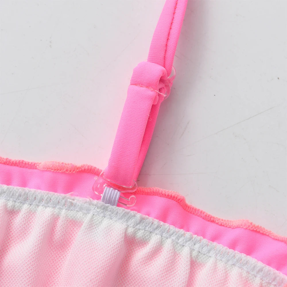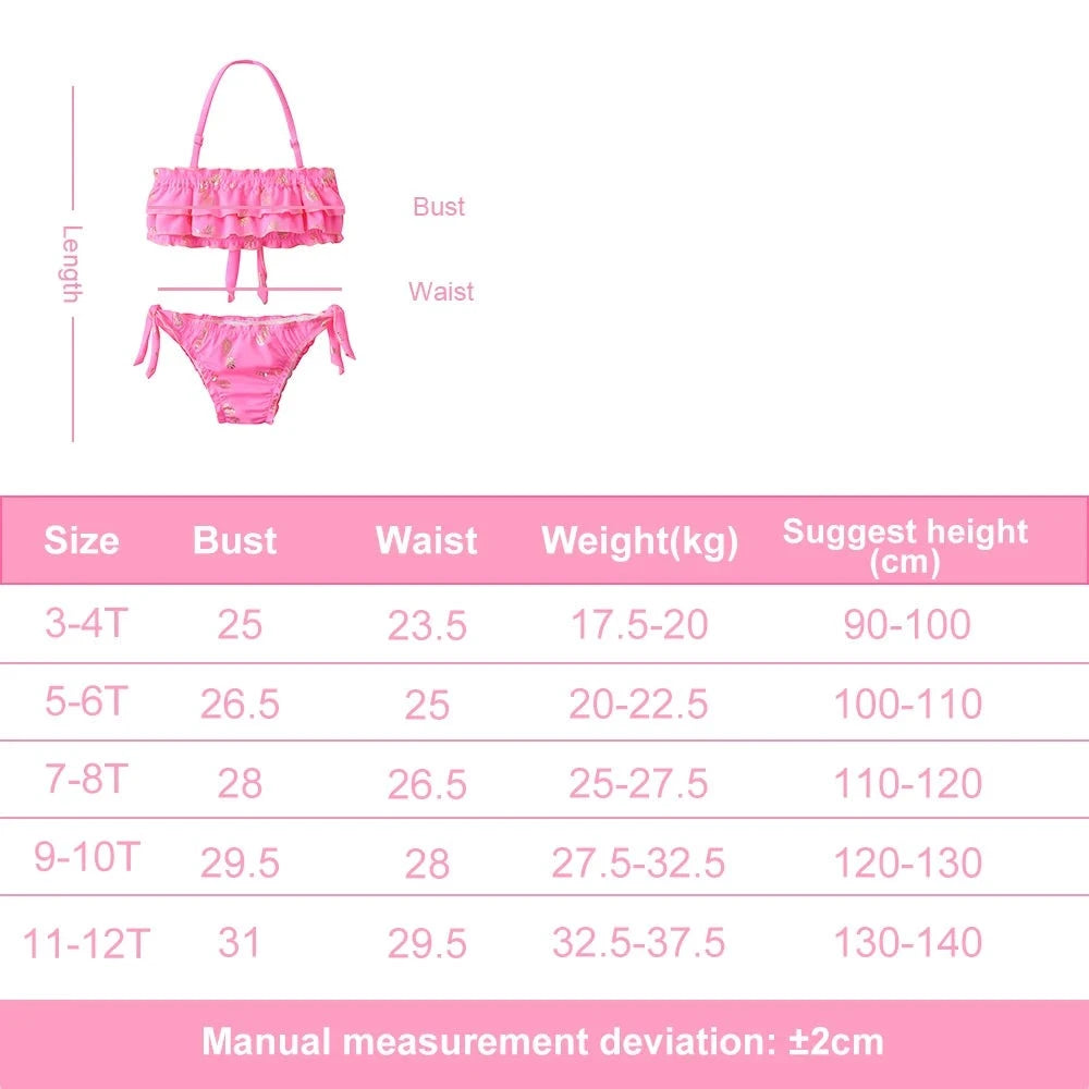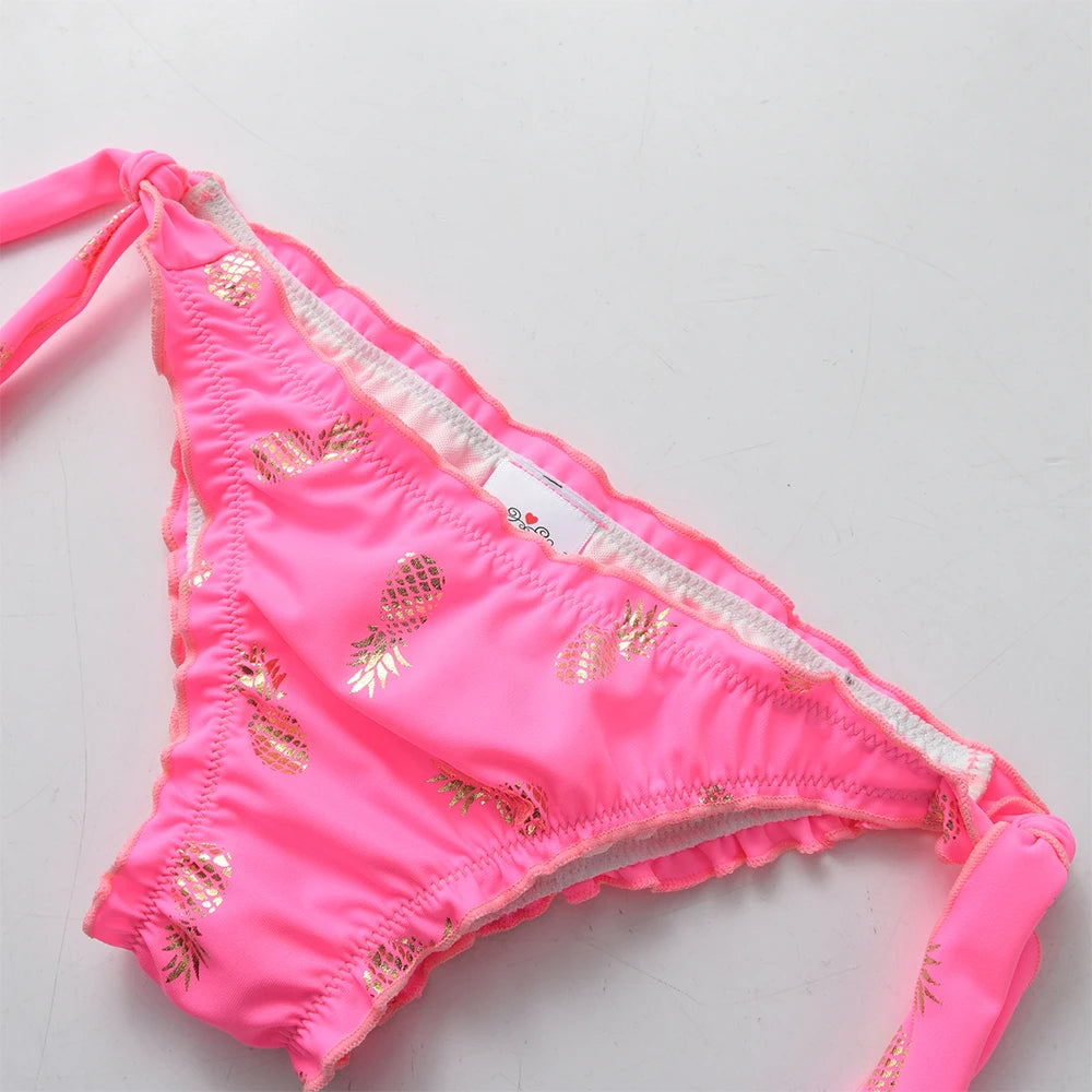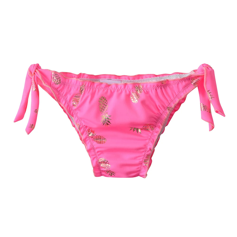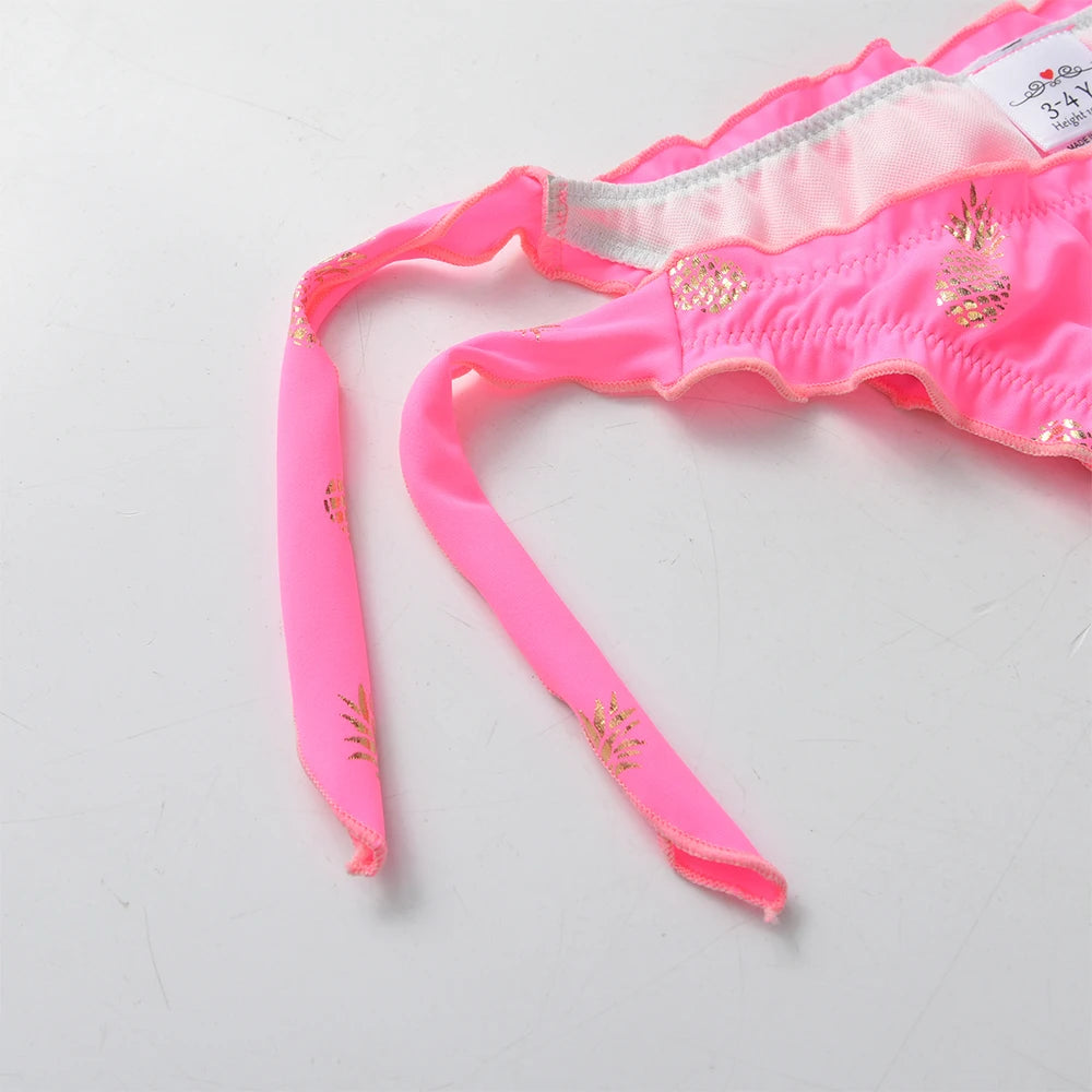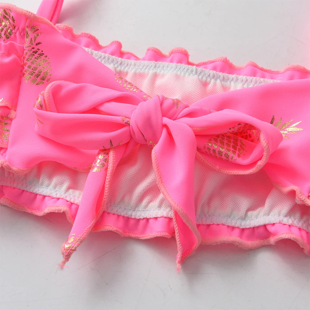 Motif Ananas Tropical : Orné de charmants imprimés d'ananas, cet ensemble bikini ajoute une touche tropicale à la collection de maillots de bain de votre petite. Parfait pour les journées ensoleillées à la piscine ou à la plage, il fera sensation partout où elle ira.