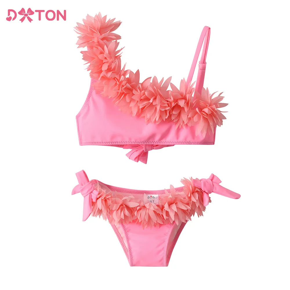 Découvrez notre adorable produit : l'ensemble bikini à volants pour fille !