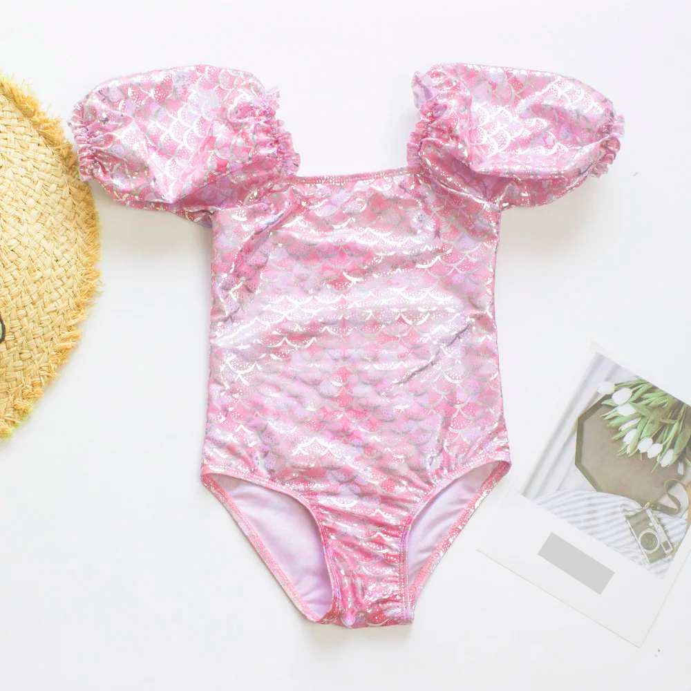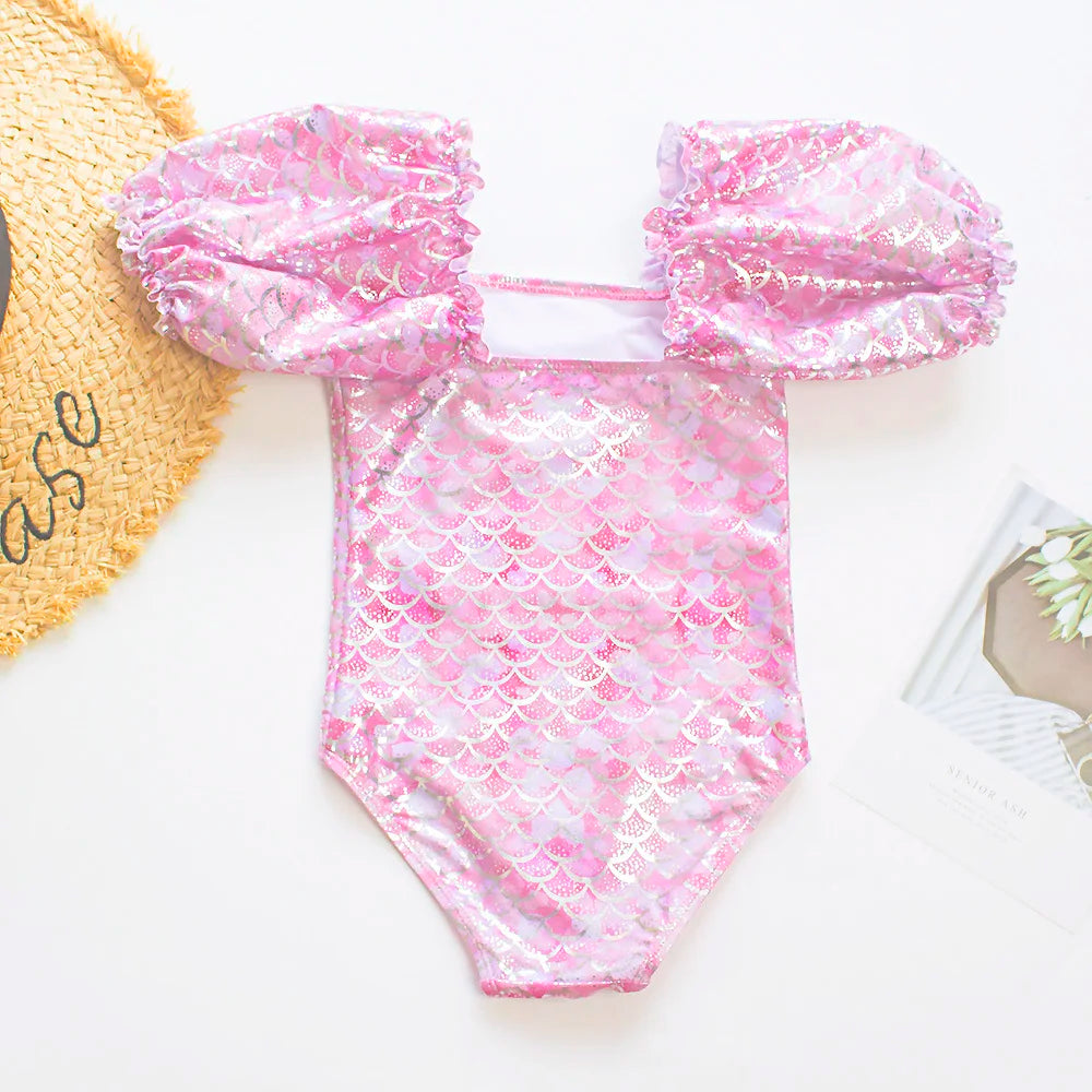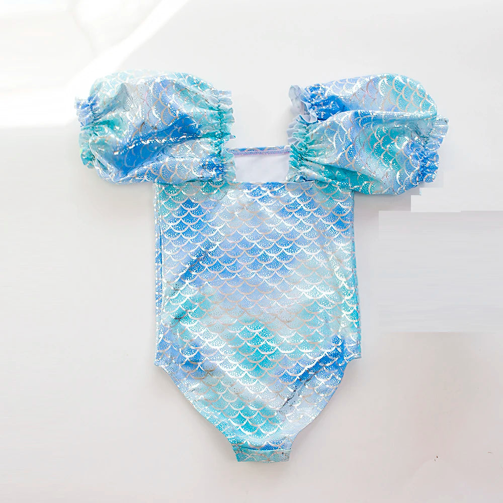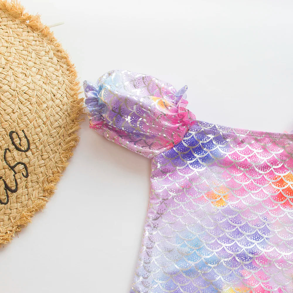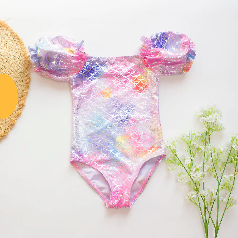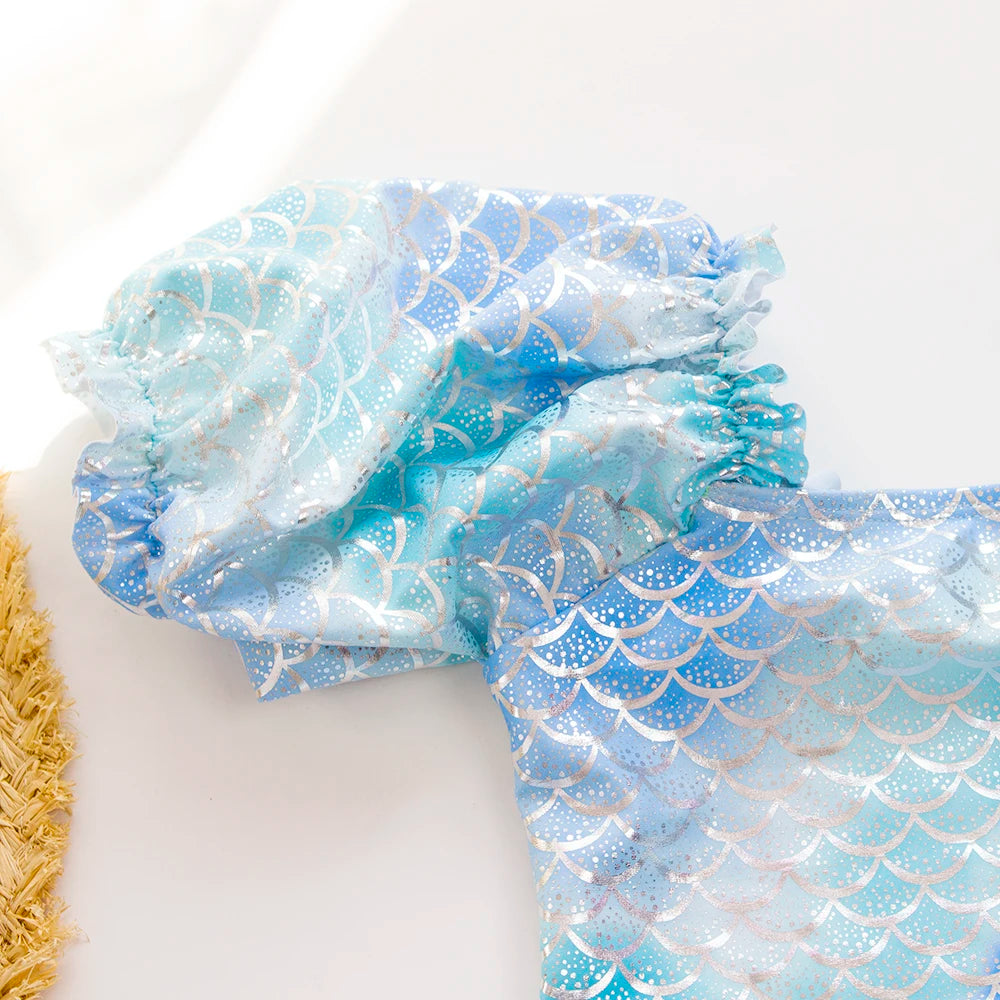 Découvrez notre superbe maillot de bain fille à manches bouffantes et dégradé - Maillot de bain sirène !