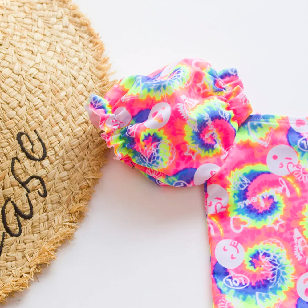 Que votre enfant s'amuse dans la piscine, construise des châteaux de sable sur la plage ou se prélasse simplement au soleil, notre maillot de bain fille à manches bouffantes dégradées est le choix idéal pour toutes ses aventures aquatiques.