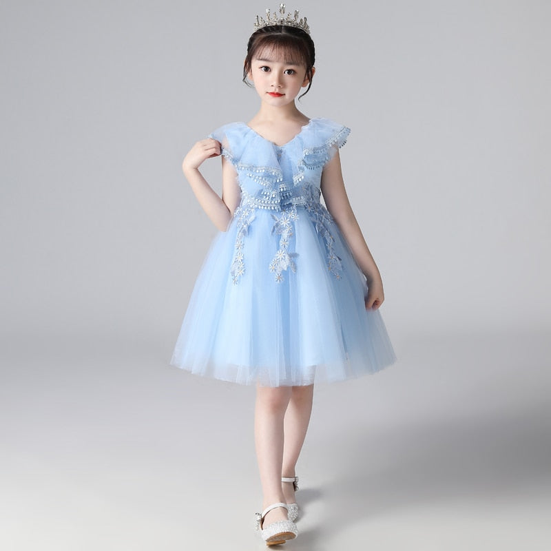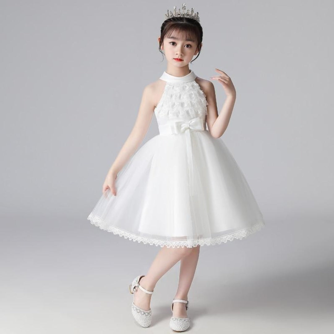 Cette robe de princesse en dentelle à col licou et revers est idéale pour les filles. Une magnifique robe pour votre petite princesse lors de son grand jour. Cette robe est adorable et peut être portée pour un mariage ou toute autre occasion.