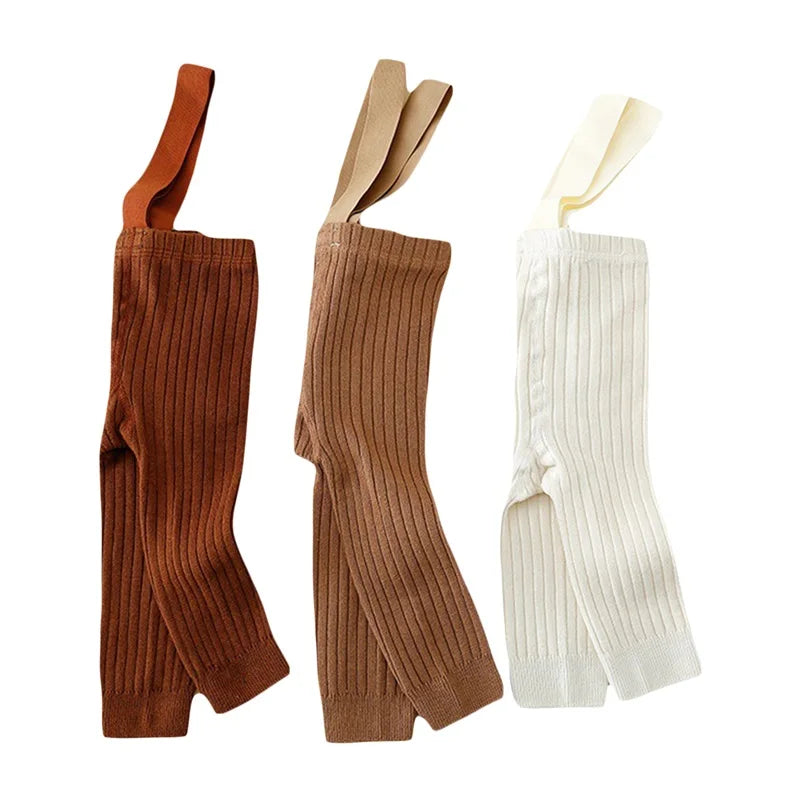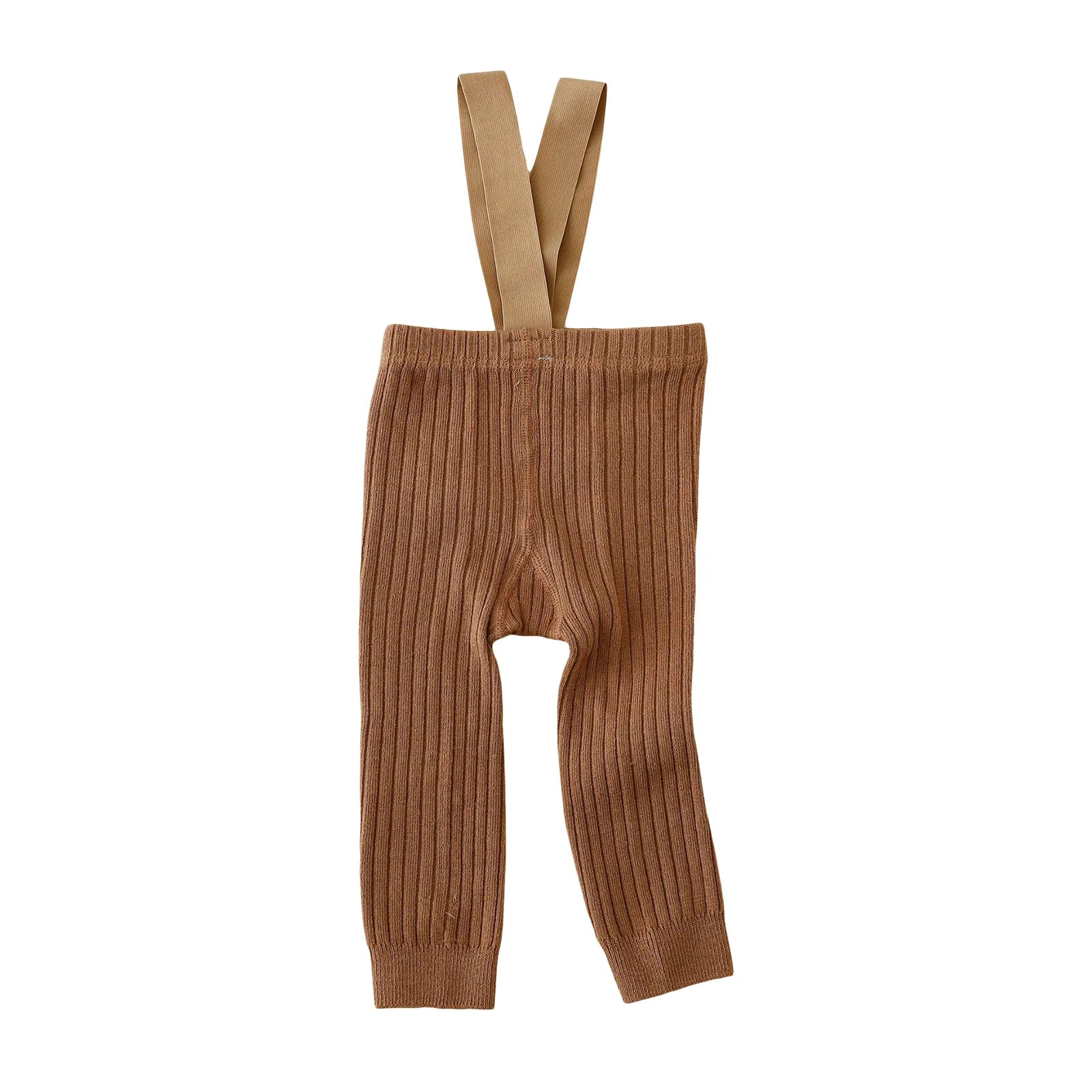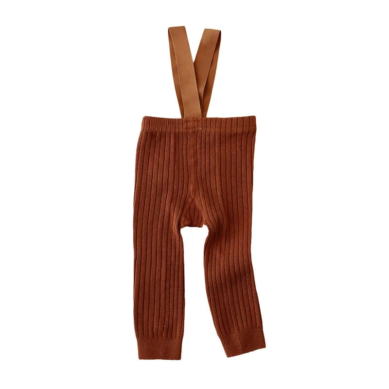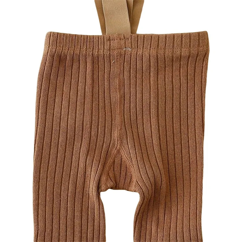 Leggings côtelés pour bébé fille avec bretelles - Salopette en tricot chaud