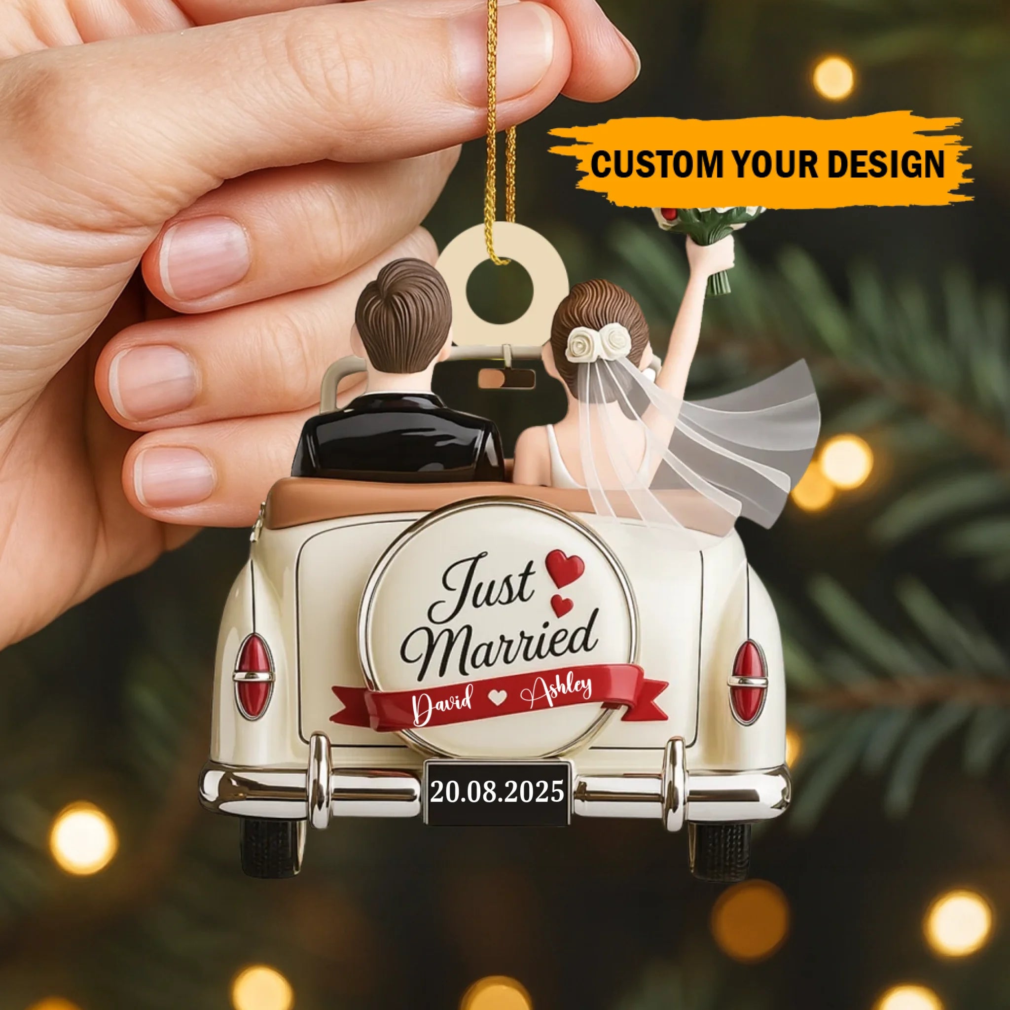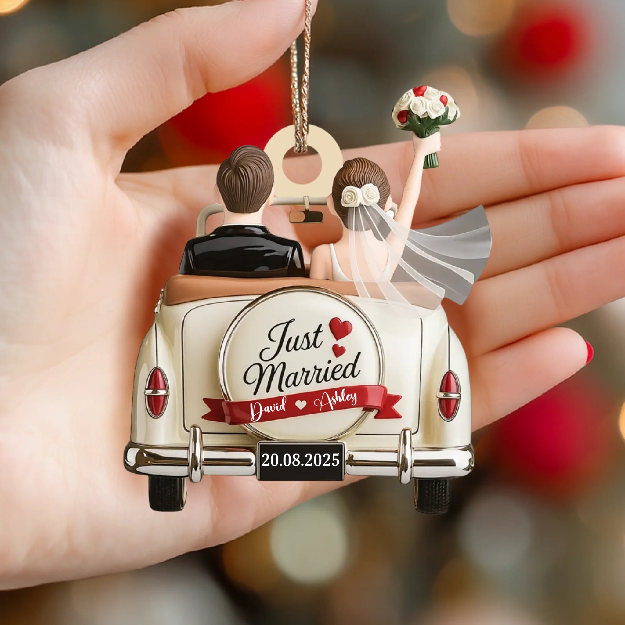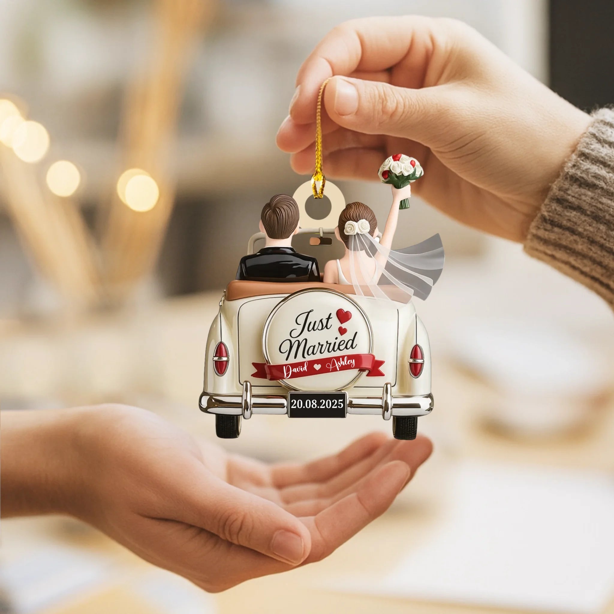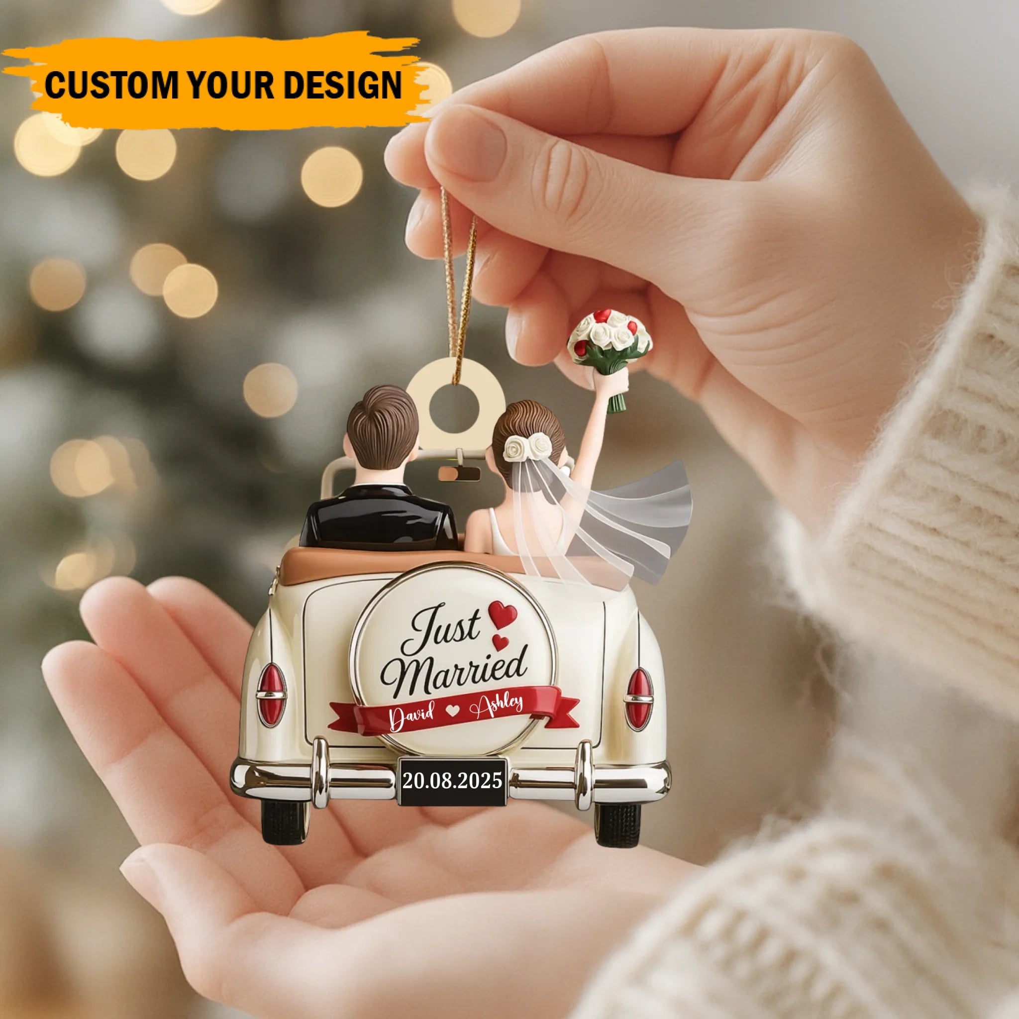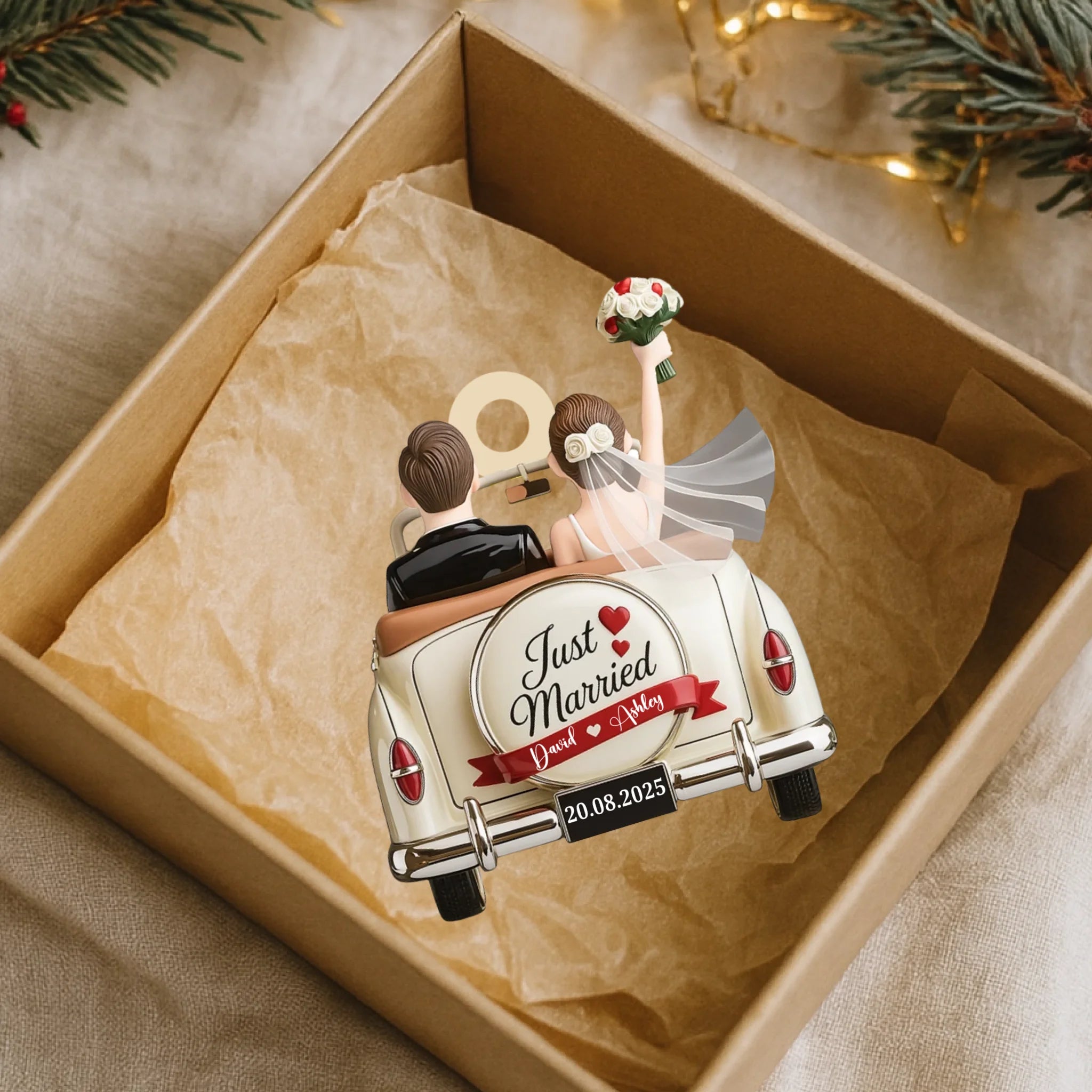 Cet adorable ornement vous permet de personnaliser vos prénoms, couleurs de peau et date de mariage, afin de créer un souvenir unique qui reflète parfaitement votre histoire d'amour. Que ce soit sur votre sapin de Noël, dans votre voiture, ou à la maison, c’est un rappel quotidien de votre journée spéciale et de votre chemin à venir ensemble.