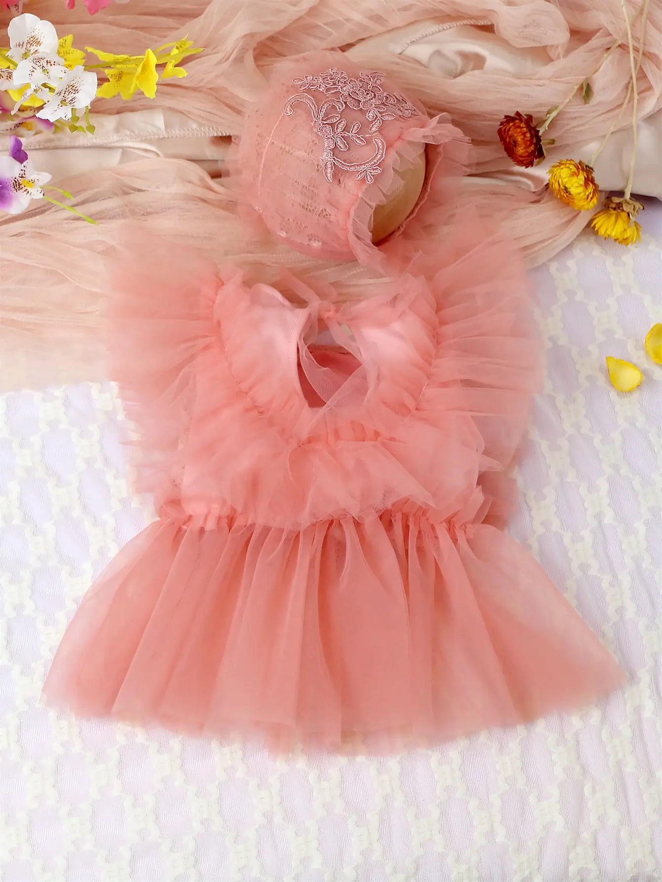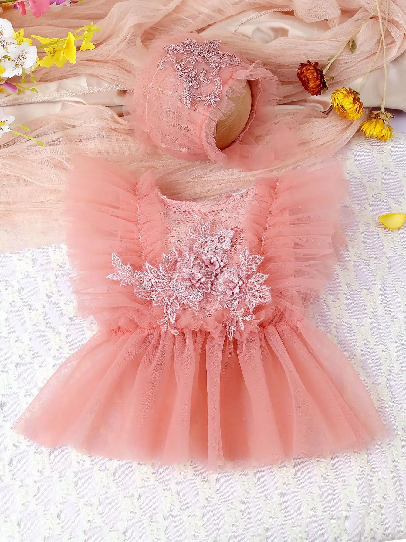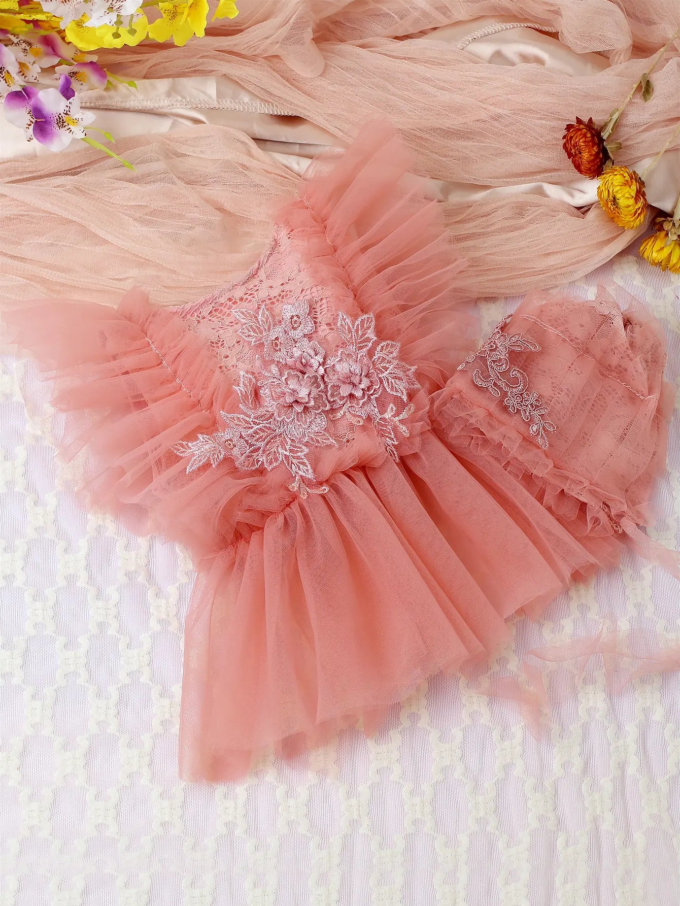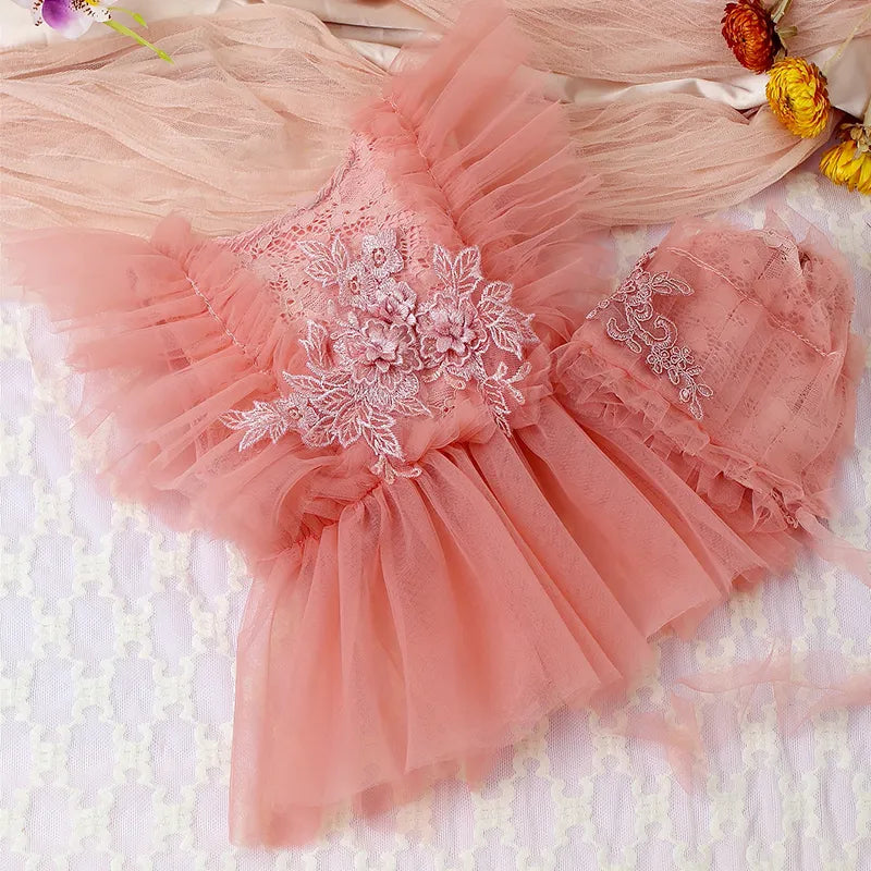 Élégance florale en dentelle : Plongez votre bébé dans la beauté intemporelle des délicates fleurs en dentelle, créant un look enchanteur et élégant.