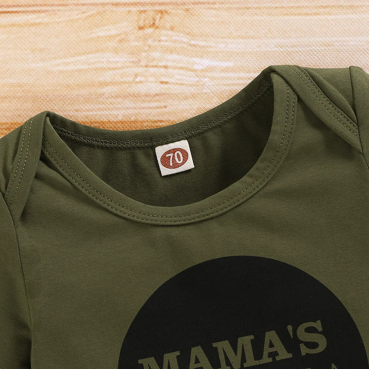 Présentation Ensemble de vêtements pour nouveau-né (0-18 mois) - Body imprimé lettres + Pantalon camouflage + Bandeau