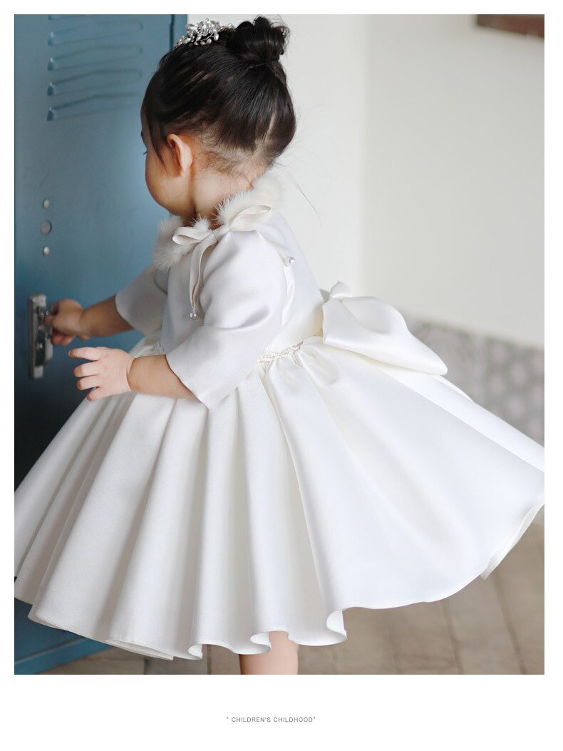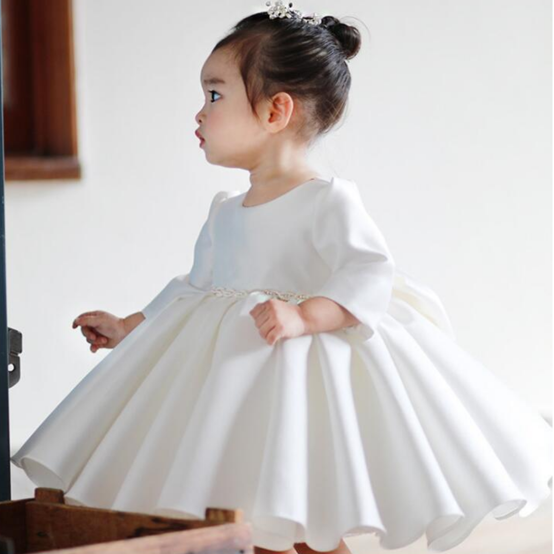 Robe de baptême élégante pour bébé fille, couleur blanc perle