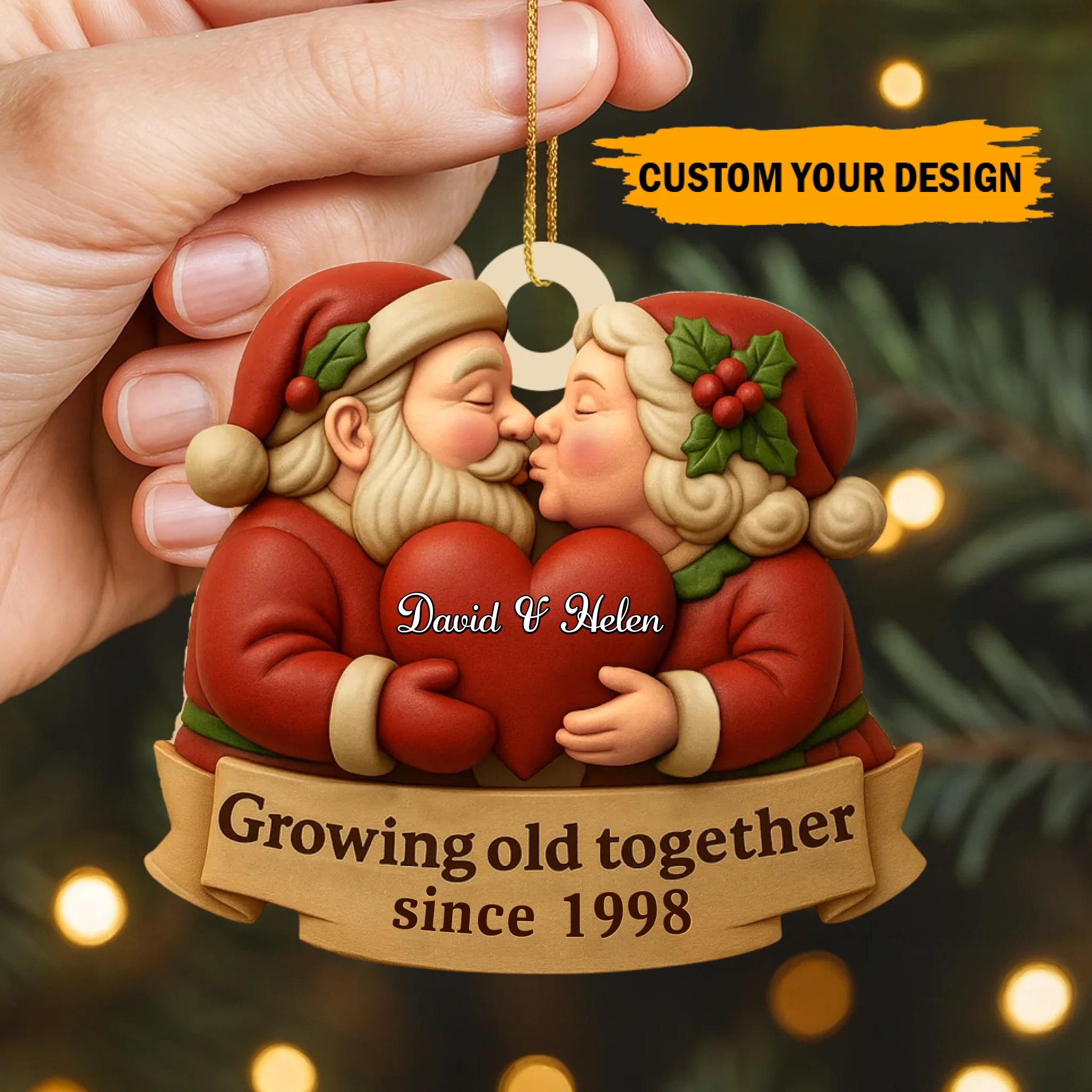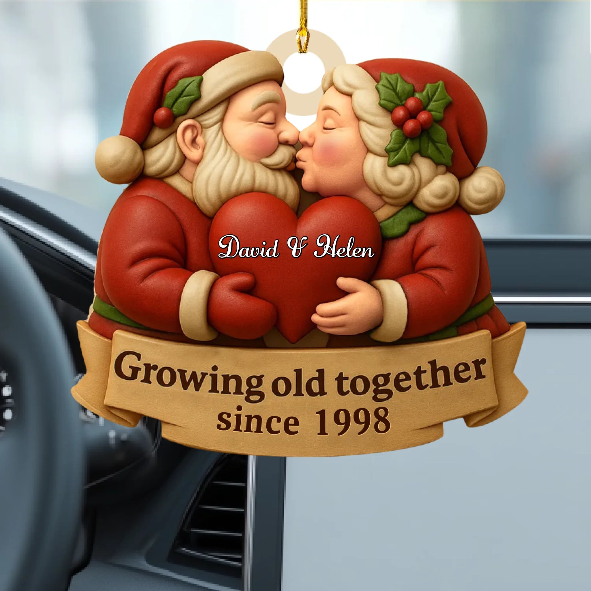 Personalized Couple Santa Wooden Ornament – Custom “Growing Old Together Since [Year]” Christmas Gift for Couples, Parents, or Grandparents